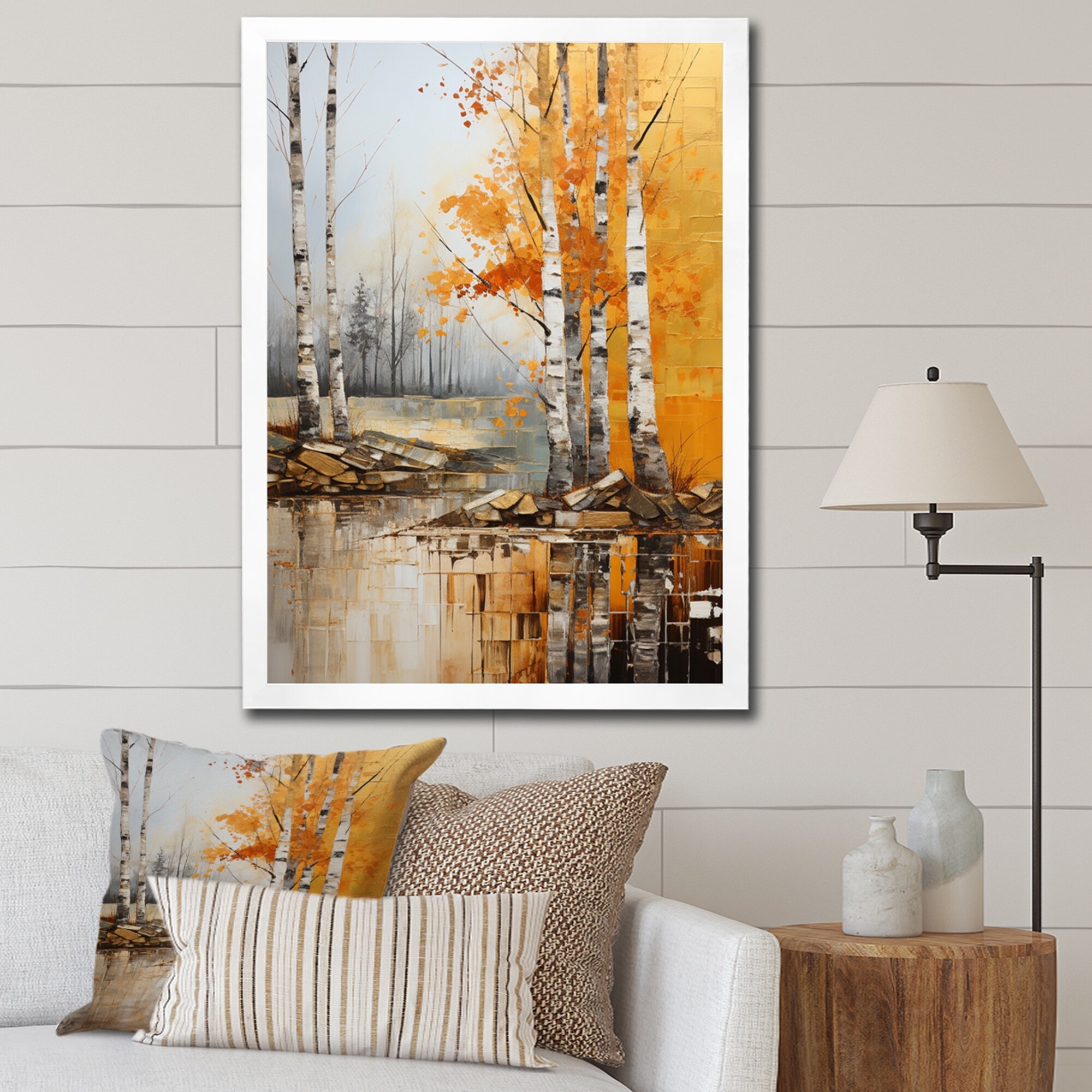 Designart "Birch Woods Autumn Tapestry VI" Tree Birch Framed Wall Art Prints