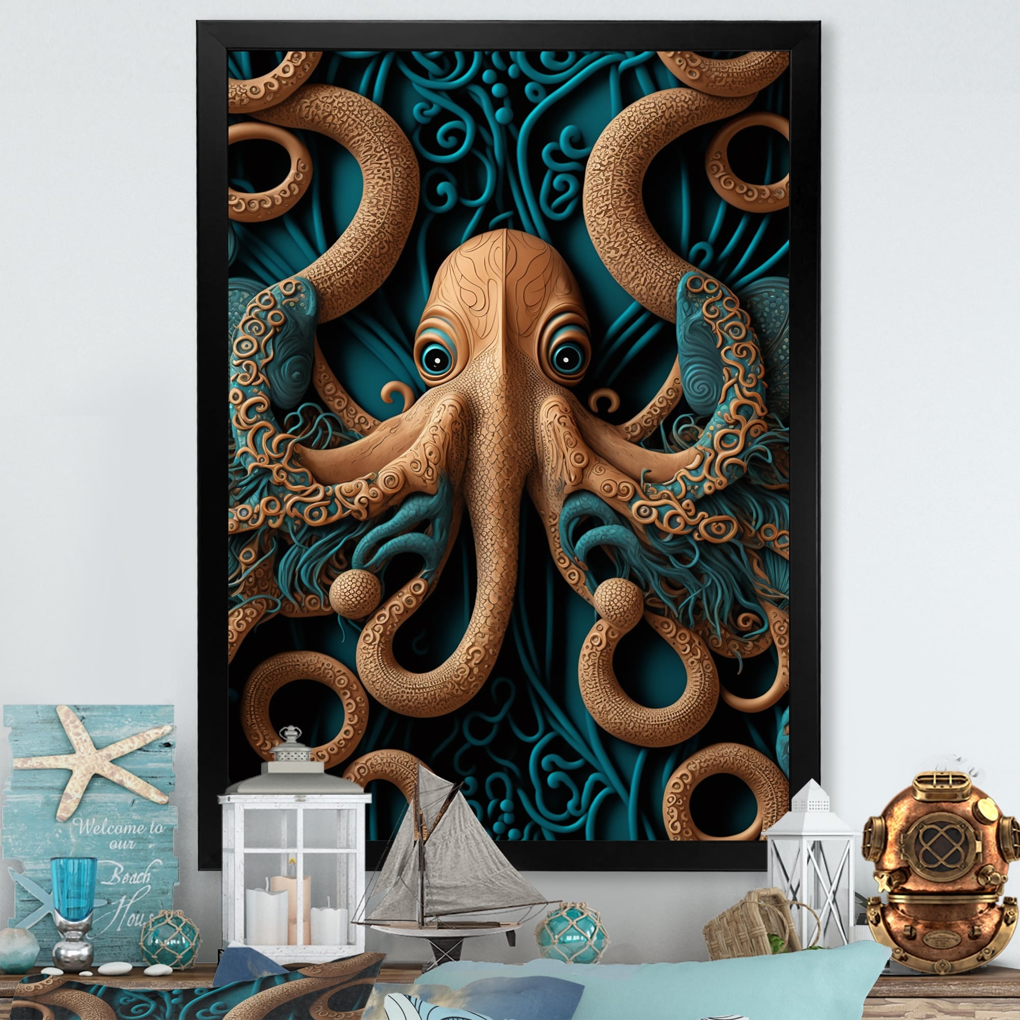 Designart "Majestic Otherworldly Octopus" Animal Octopus Framed Art Print