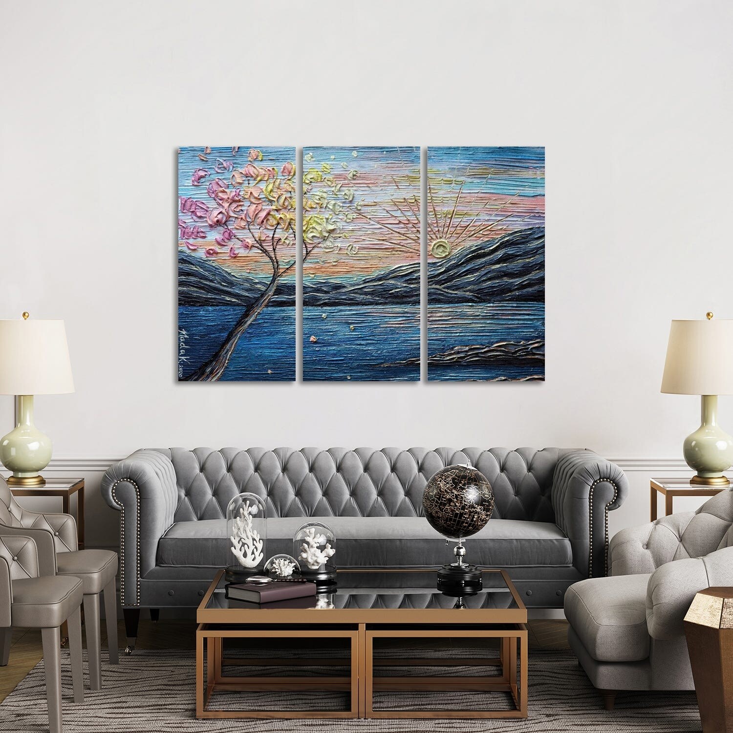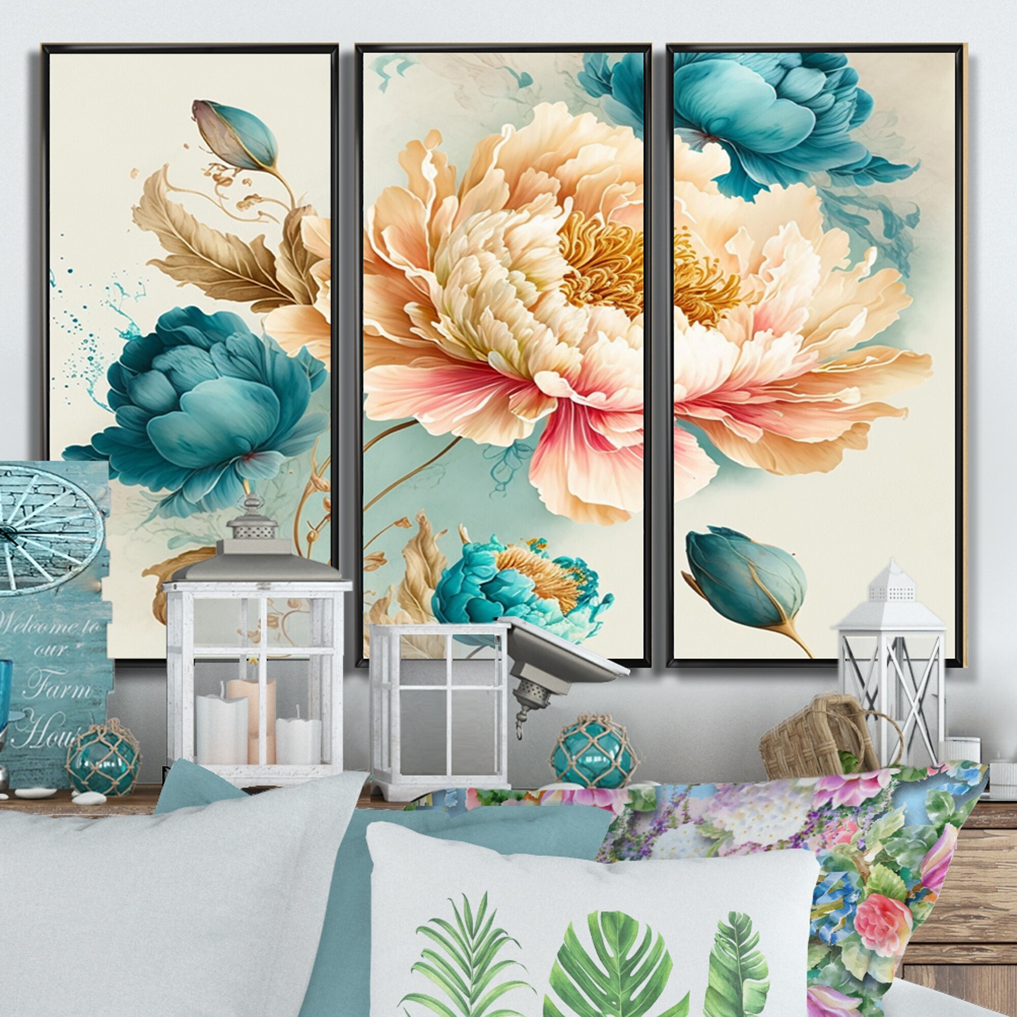 iCanvas "Somewhere Peachy - Blue Peach" by Nada Khatib 3-Piece Canvas Wall Art Set