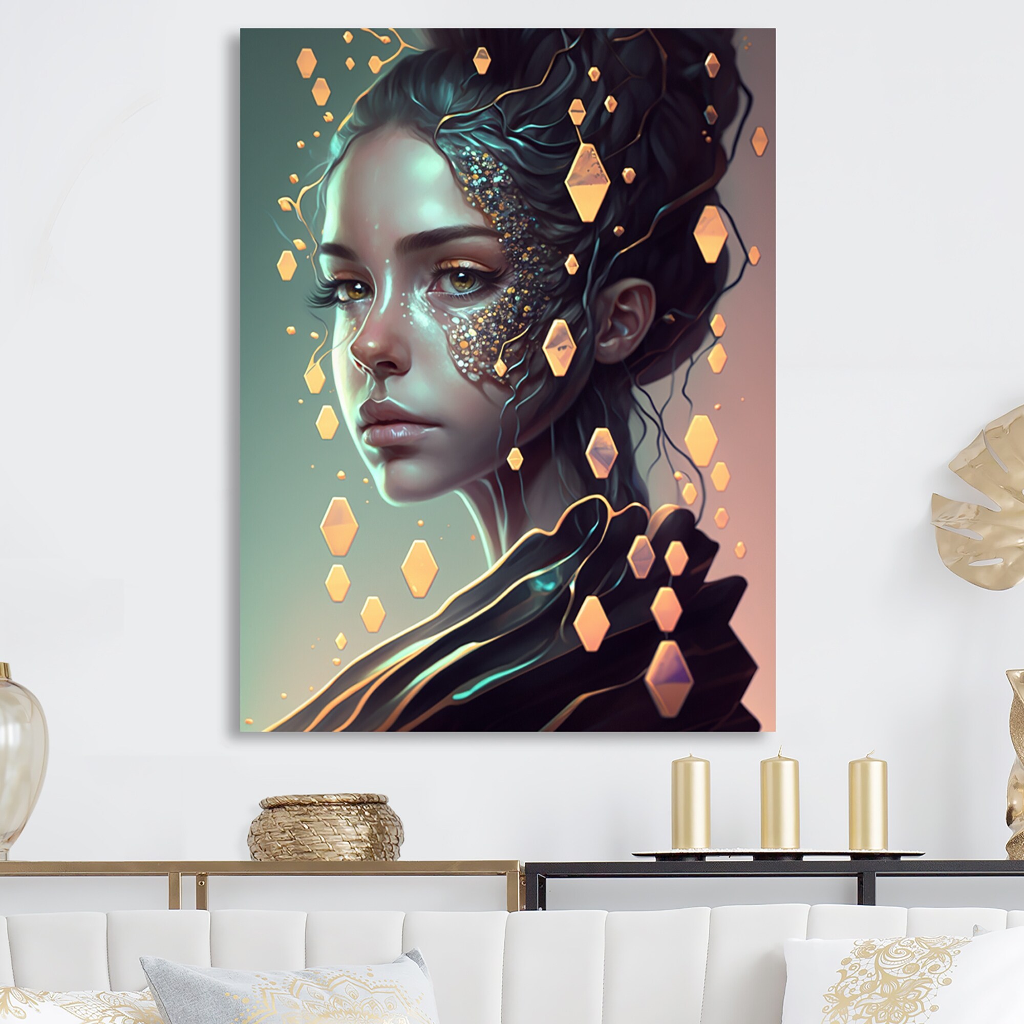 Designart "Crystal Hexagon Woman III" Modern Woman Metal Wall Art