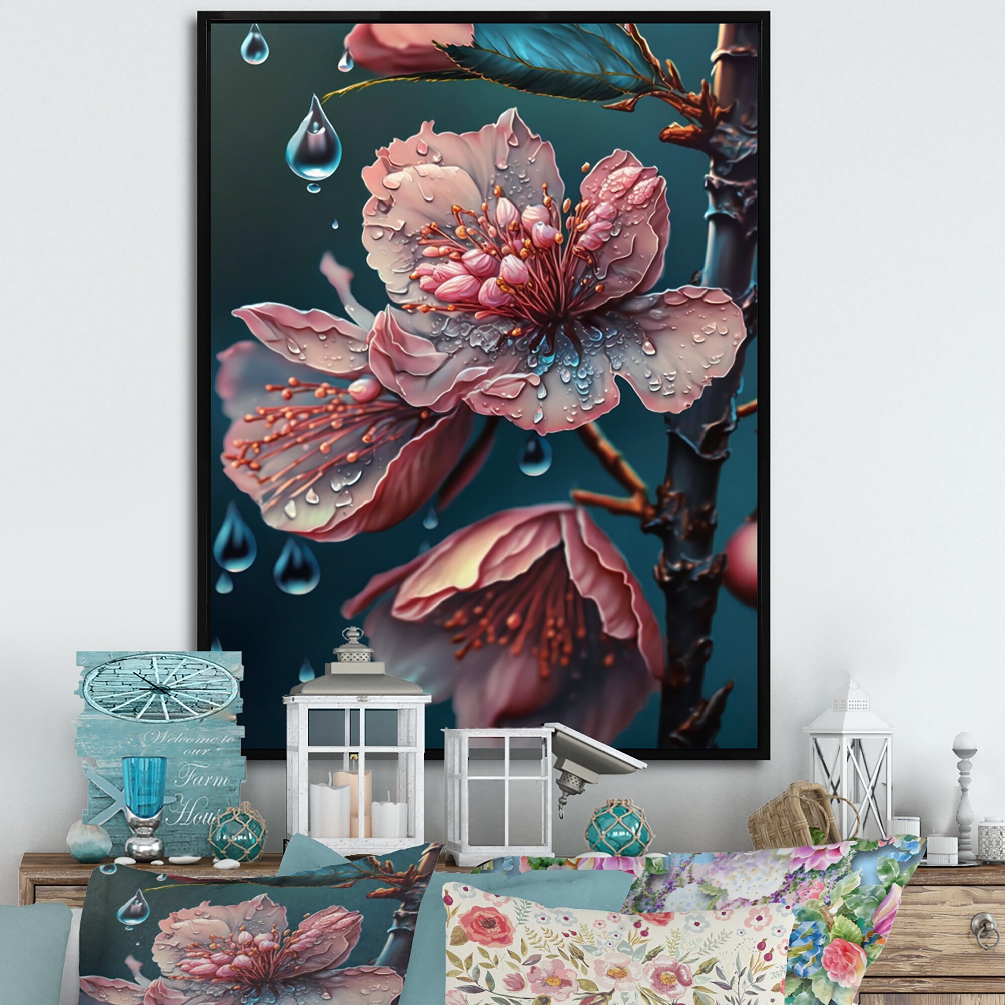 Designart "Pink Blooming Cherry Flowers" Floral & Botanical Framed Canvas Art Print