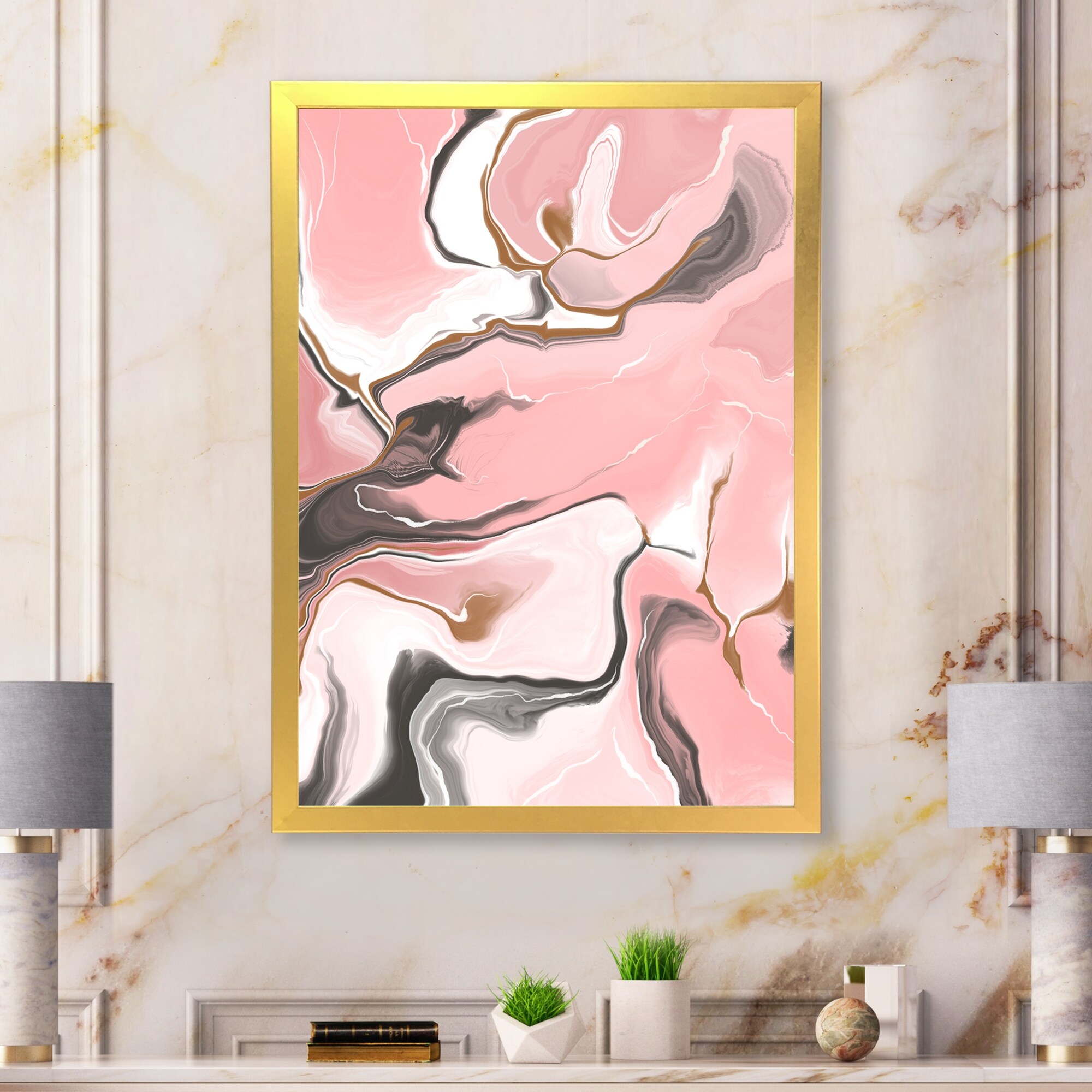 Designart "Pink Abstract Marble Liquid Art" Abstract Framed Art Print