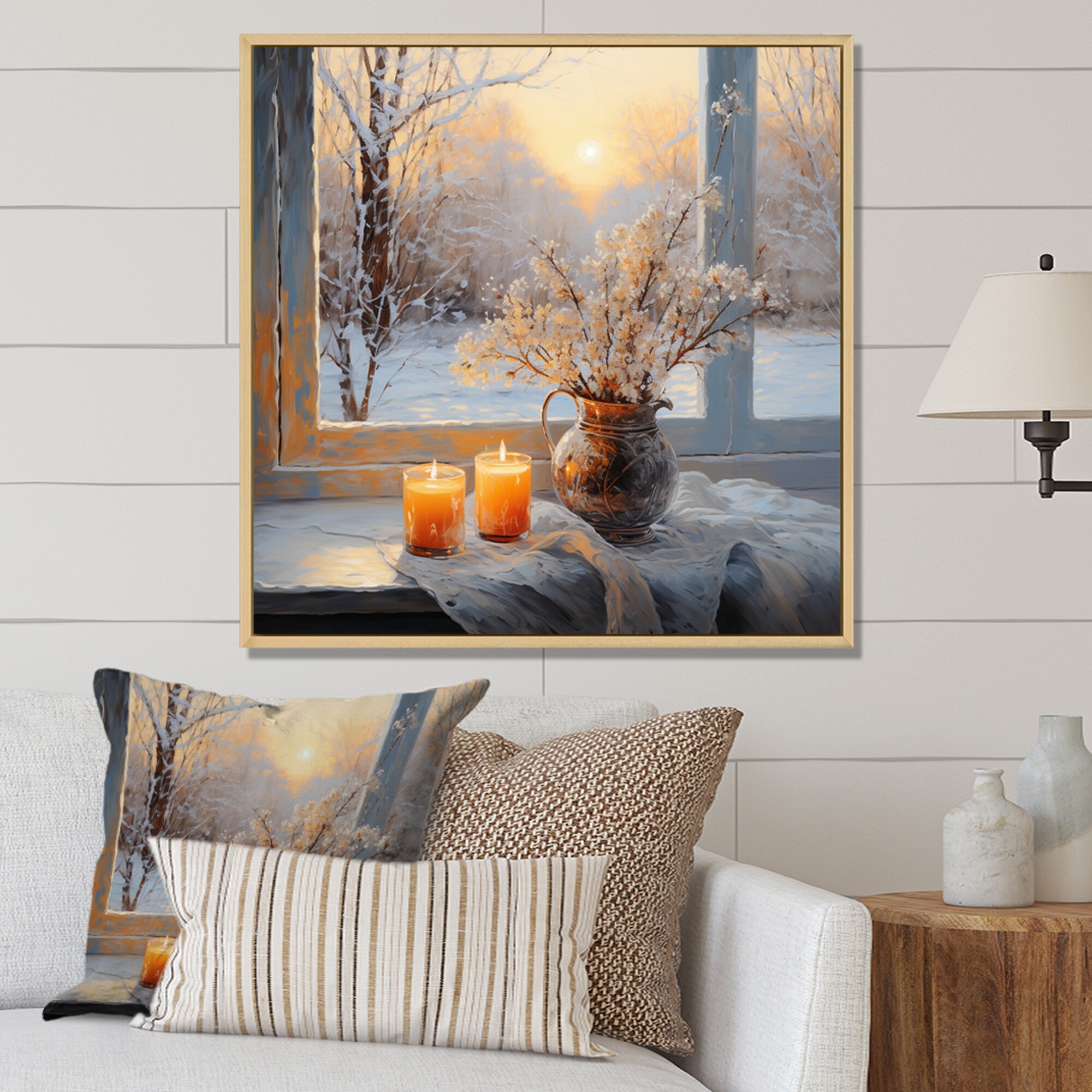 Designart "Winter Frosty Whispers Pointillism" Winter Landscape Framed Canvas Wall Art