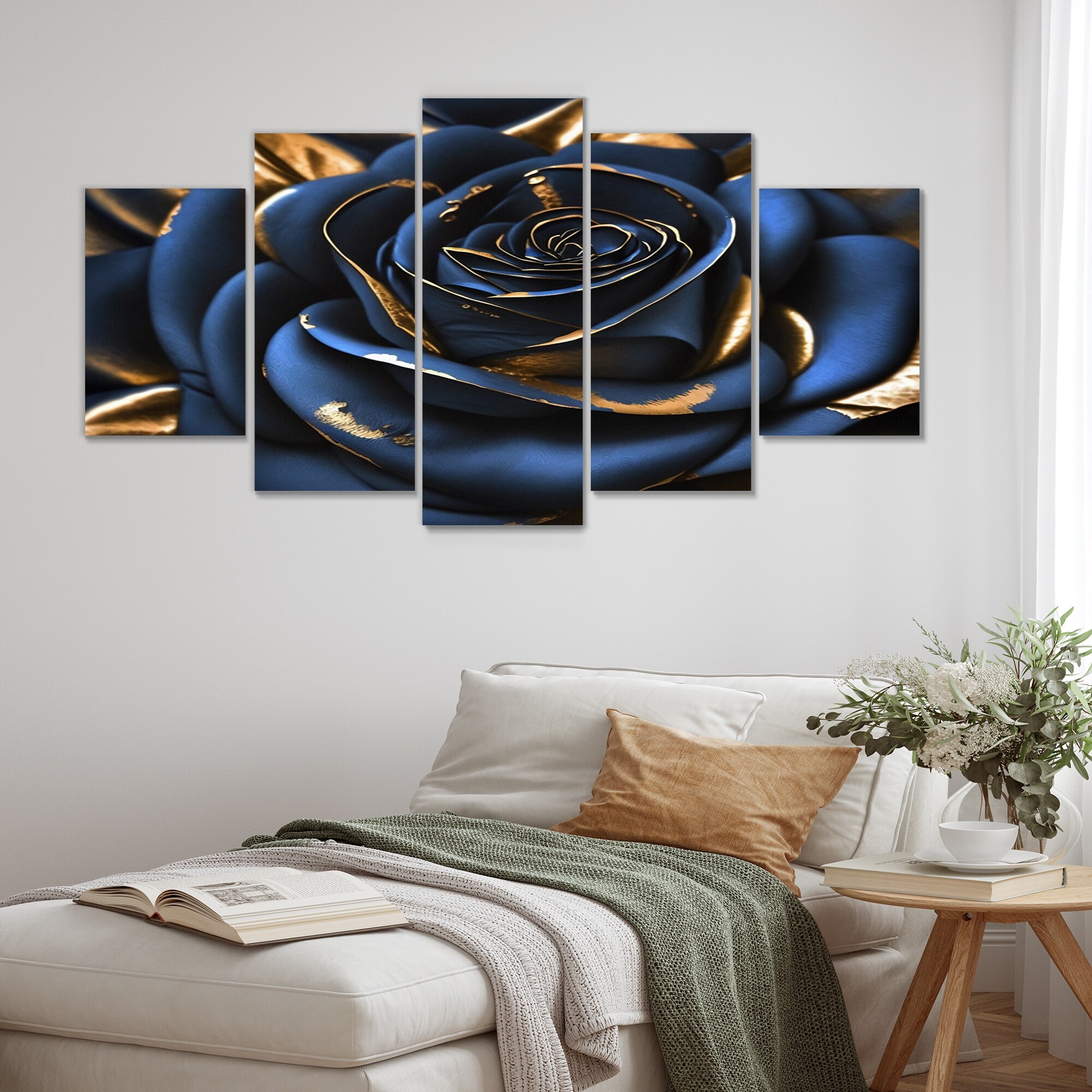 Designart "Gilded Rose in Kings Blue II" Floral Rose Multipanel Wall Art Prints