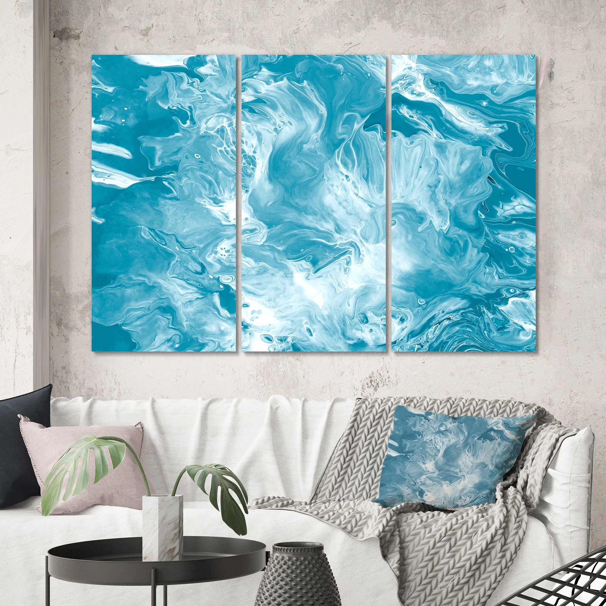 Designart "Celebrations In Turquoise Shades of Blue IV" Abstract Liquid Ink Canvas Wall Art