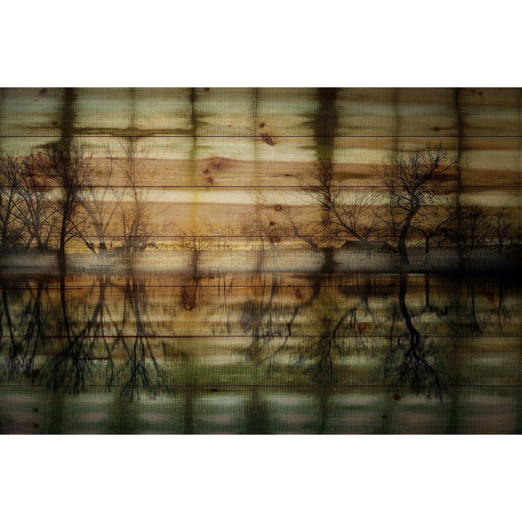Handmade Parvez Taj - Calming Reflection Natural Pine Wood Art