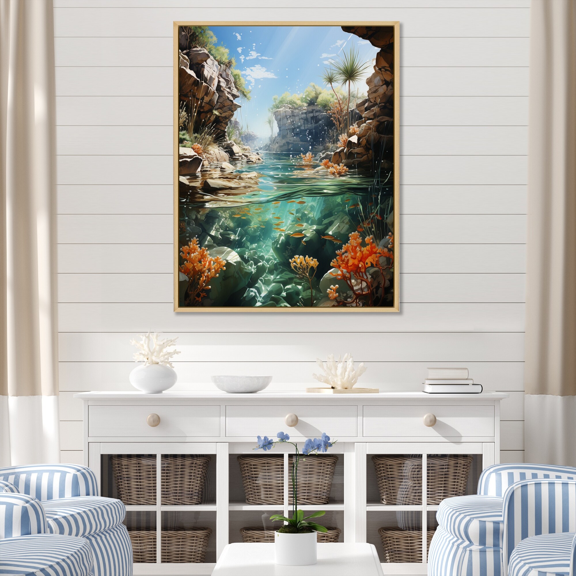 Designart "Underwater Beach Photo I" Beach Framed Canvas Art Print