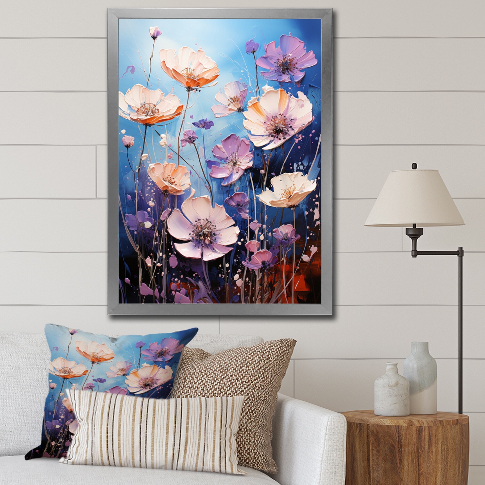 Designart "Blue Cornflowers Cascading I" Cornflowers Framed Canvas Print