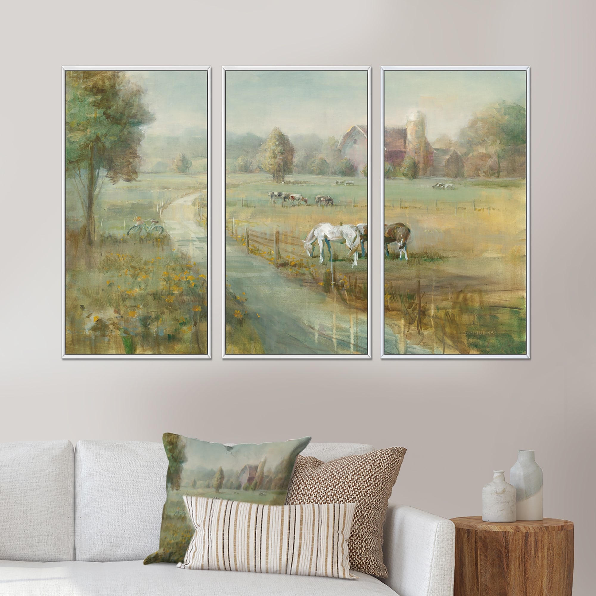 Designart "Tranquil Country Field" Farmhouse Framed Artwork Set of 3 - 4 Colors of Frames