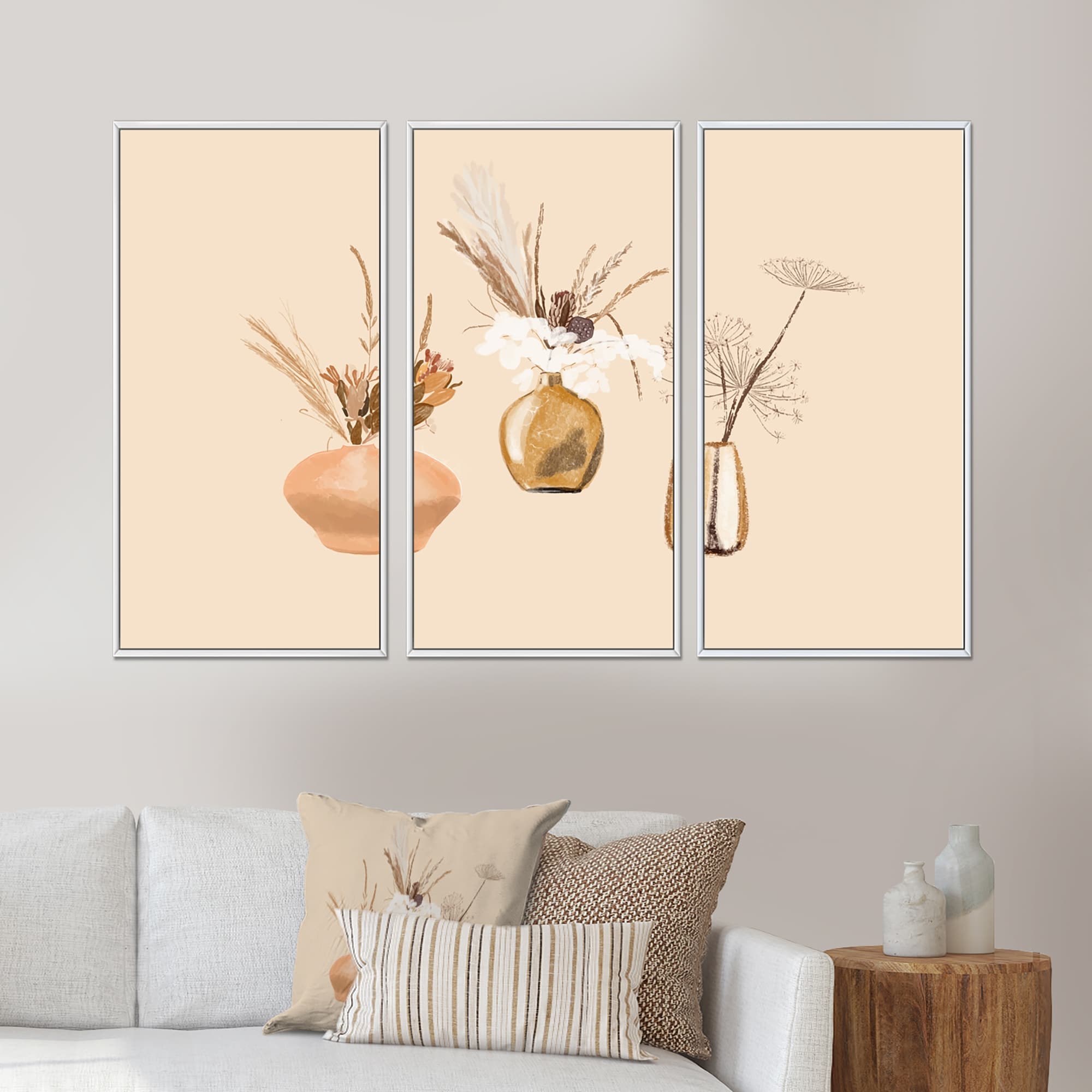 Designart "Bouquets Of Wildflowers in Gold Vases I" Traditional Framed Artwork Set of 3 - 4 Colors of Frames
