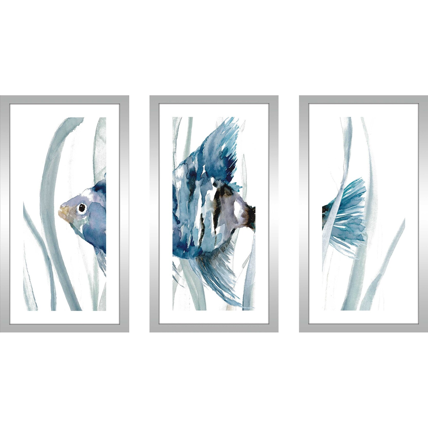 "Fish in Seagrass II" 3 Piece Print on Glossy White Aluminum