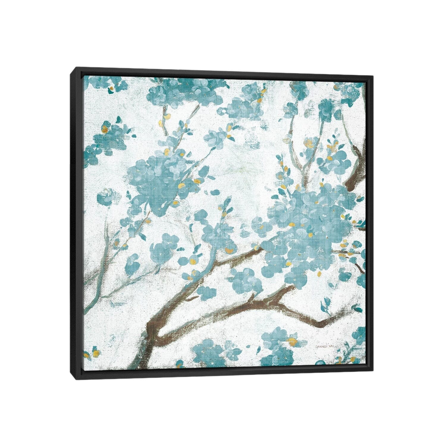 iCanvas "Teal Cherry Blossoms I on Cream Aged, No Bird" by Danhui Nai Framed Canvas Print