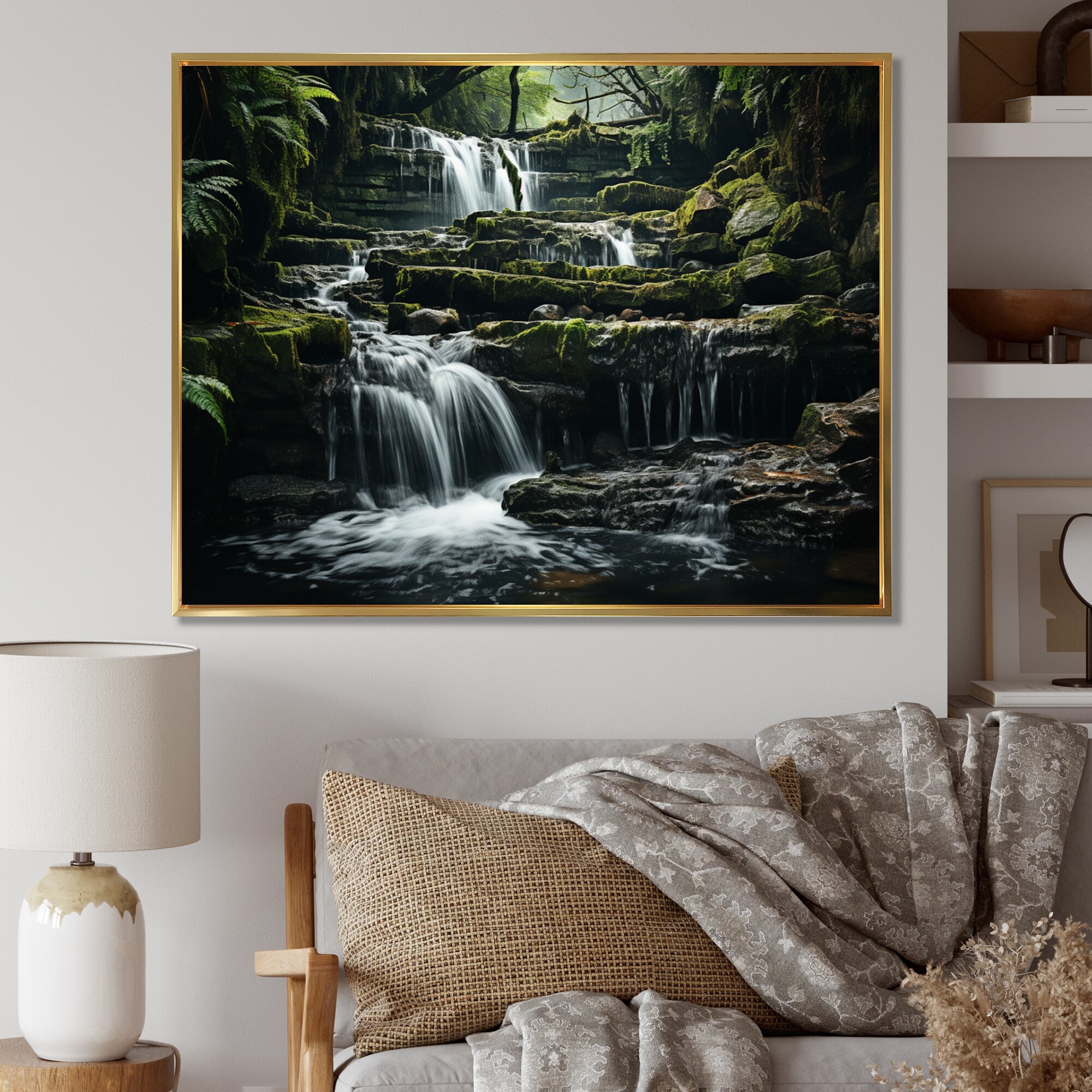 Designart "Waterfall Natures Symphony" Waterfall Framed Wall Decor