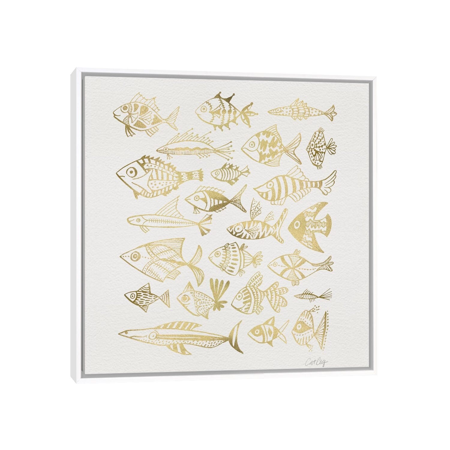 iCanvas "Fish Inkings Gold" by Cat Coquillette Framed Canvas Print