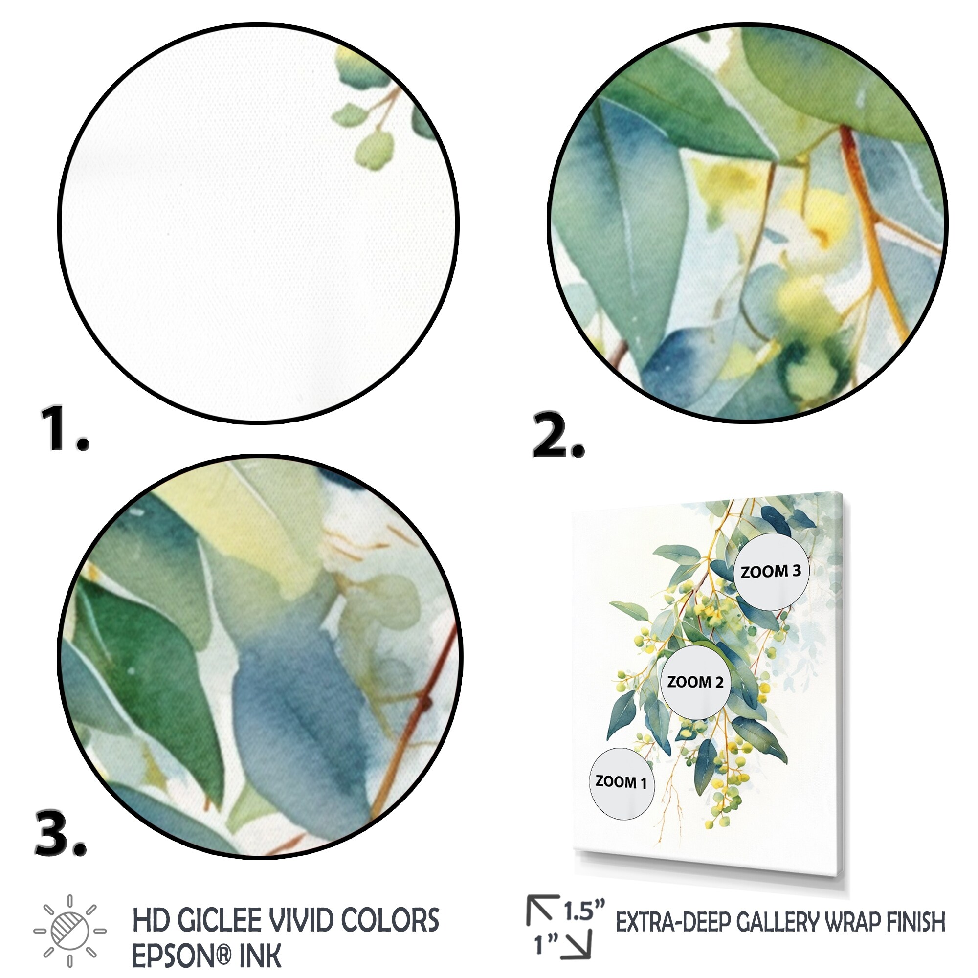 Designart "Green White Minimalism Eucalyptus Essence IV" Leaves Framed Canvas Art Print