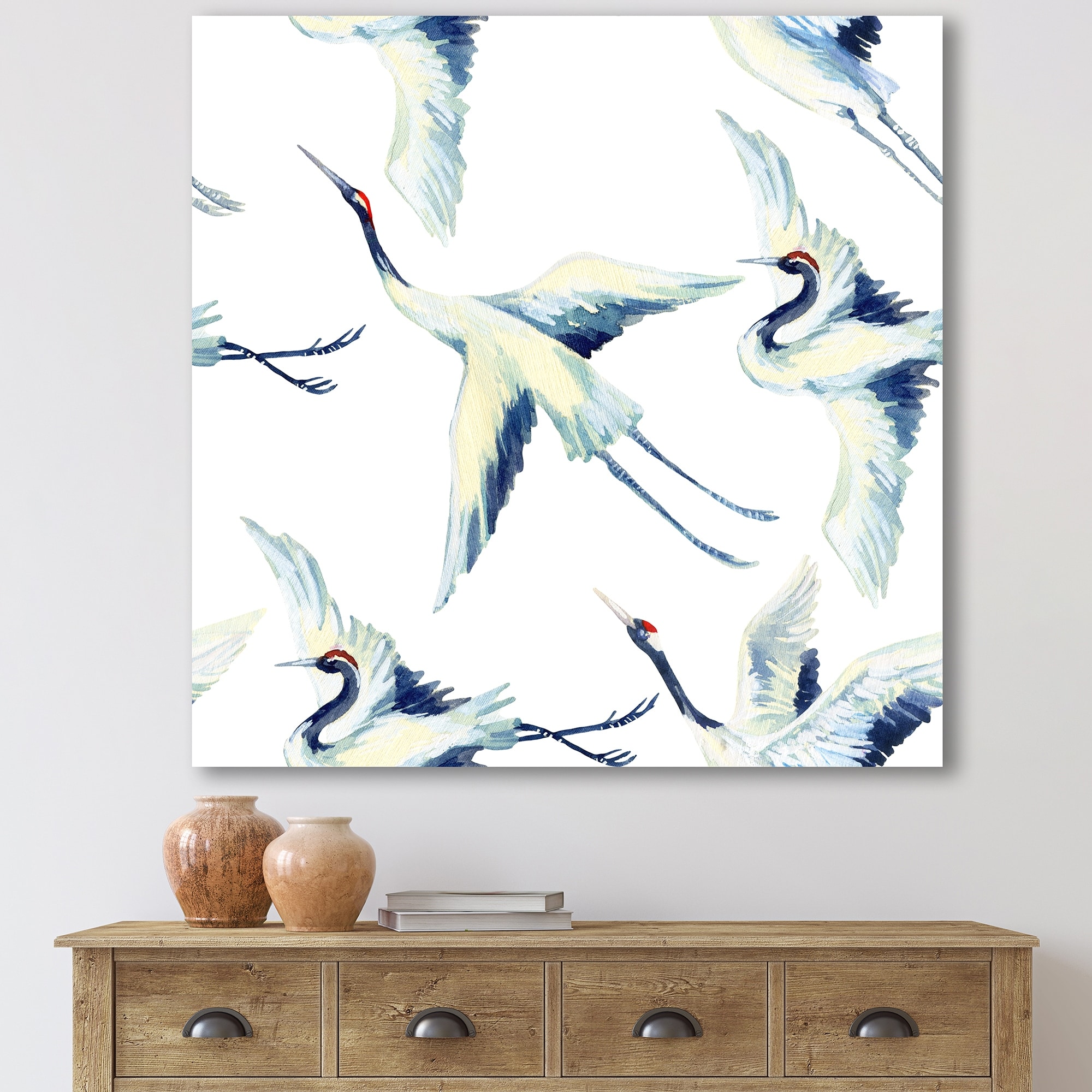 Designart "Asian Crane Bird" Traditional Canvas Wall Art Print