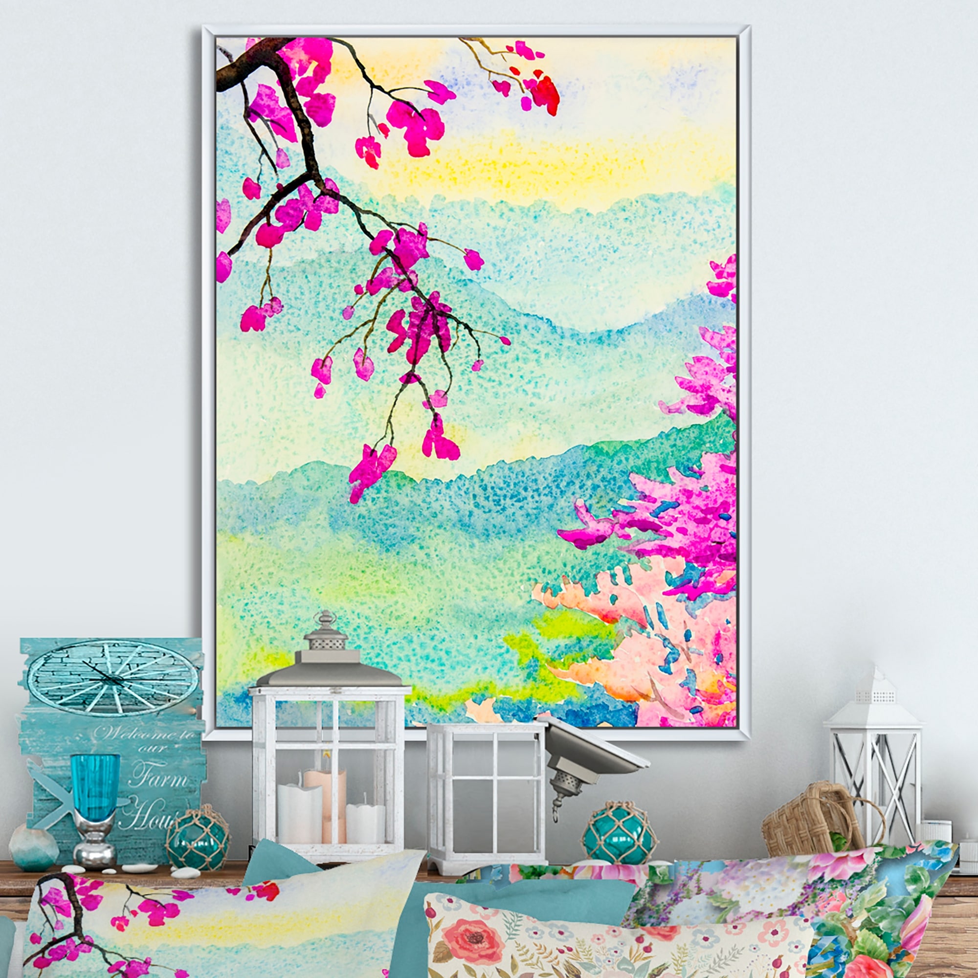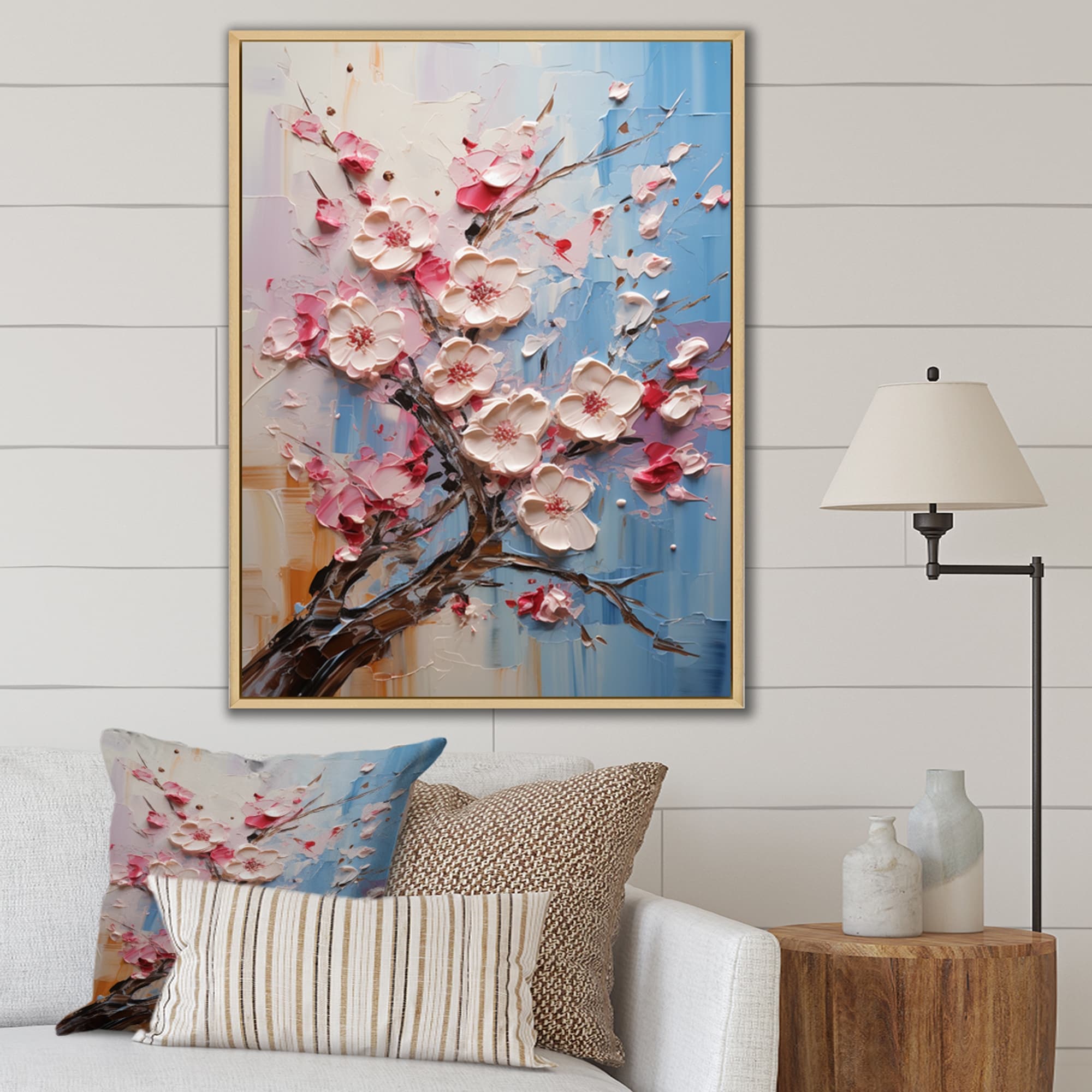 Designart "Colorfull Blooming Asian Pink Tree II" Traditional Framed Canvas Wall Decor