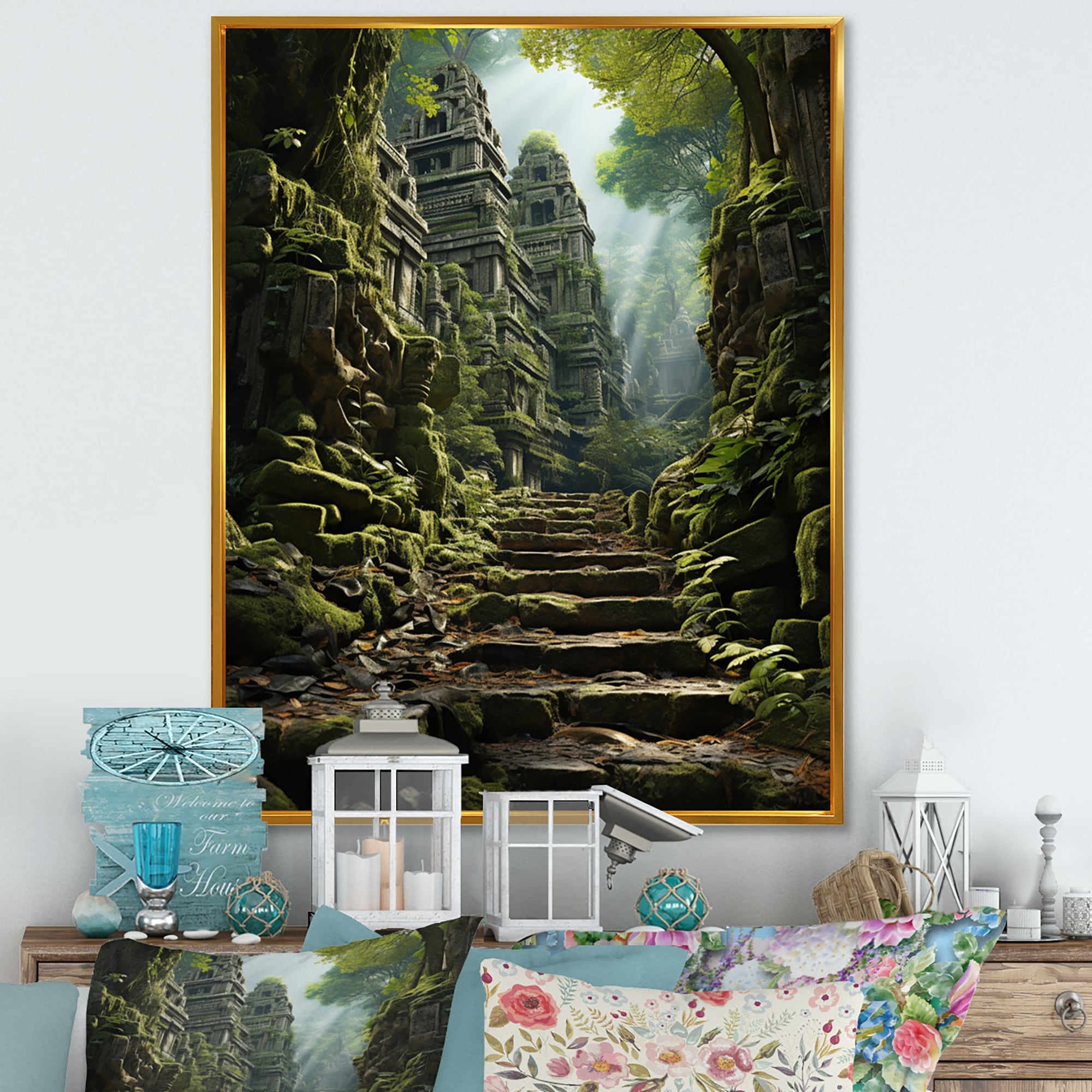 Designart "Asian Art Journey to Angkor VI" Asian Art Framed Wall Art Prints