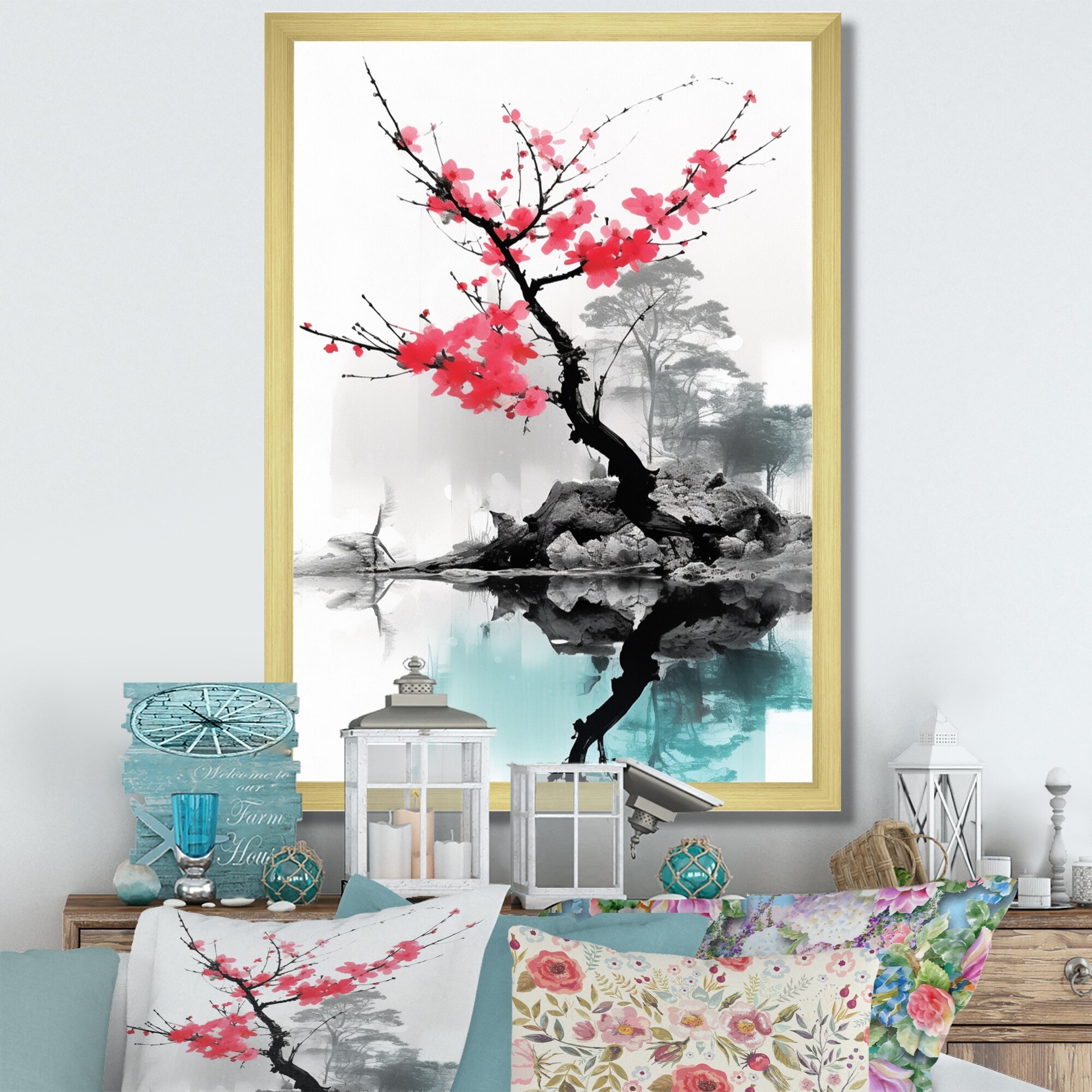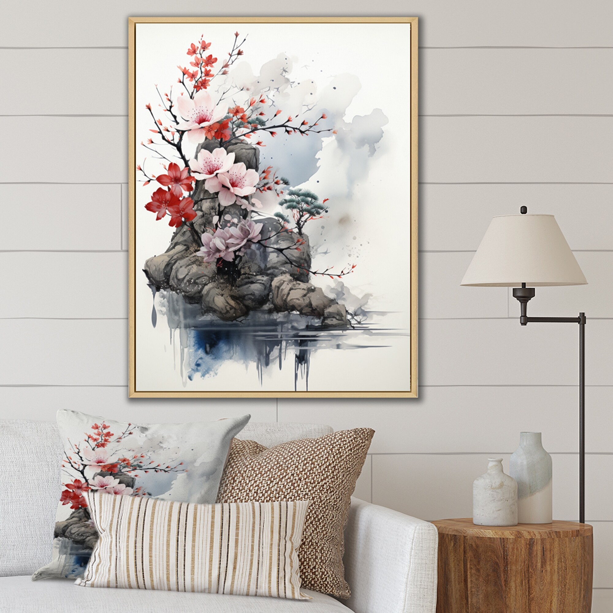 Designart "Asian Art Sakura Serenity II" Asian Art Framed Canvas Wall Art