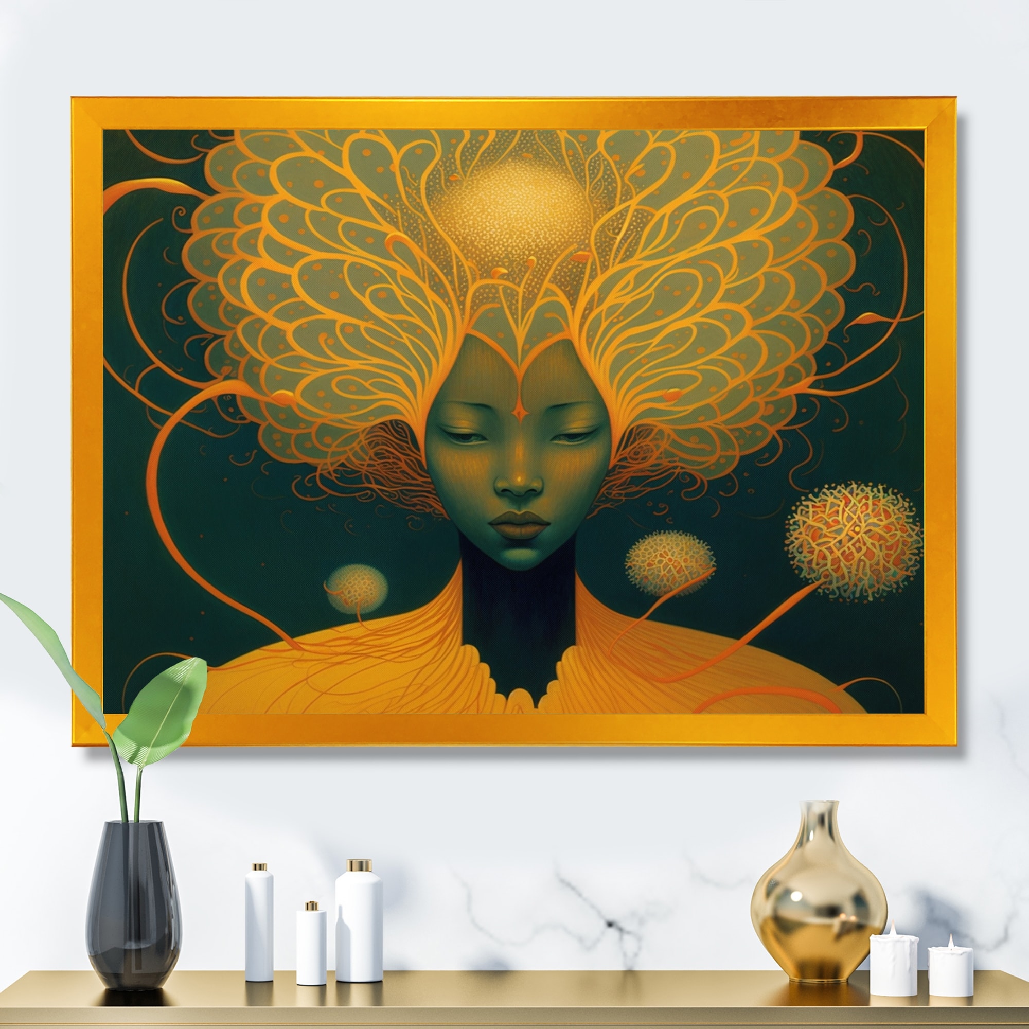 Designart "Japanese Mystery Goddess I" Asian Woman Framed Art Print