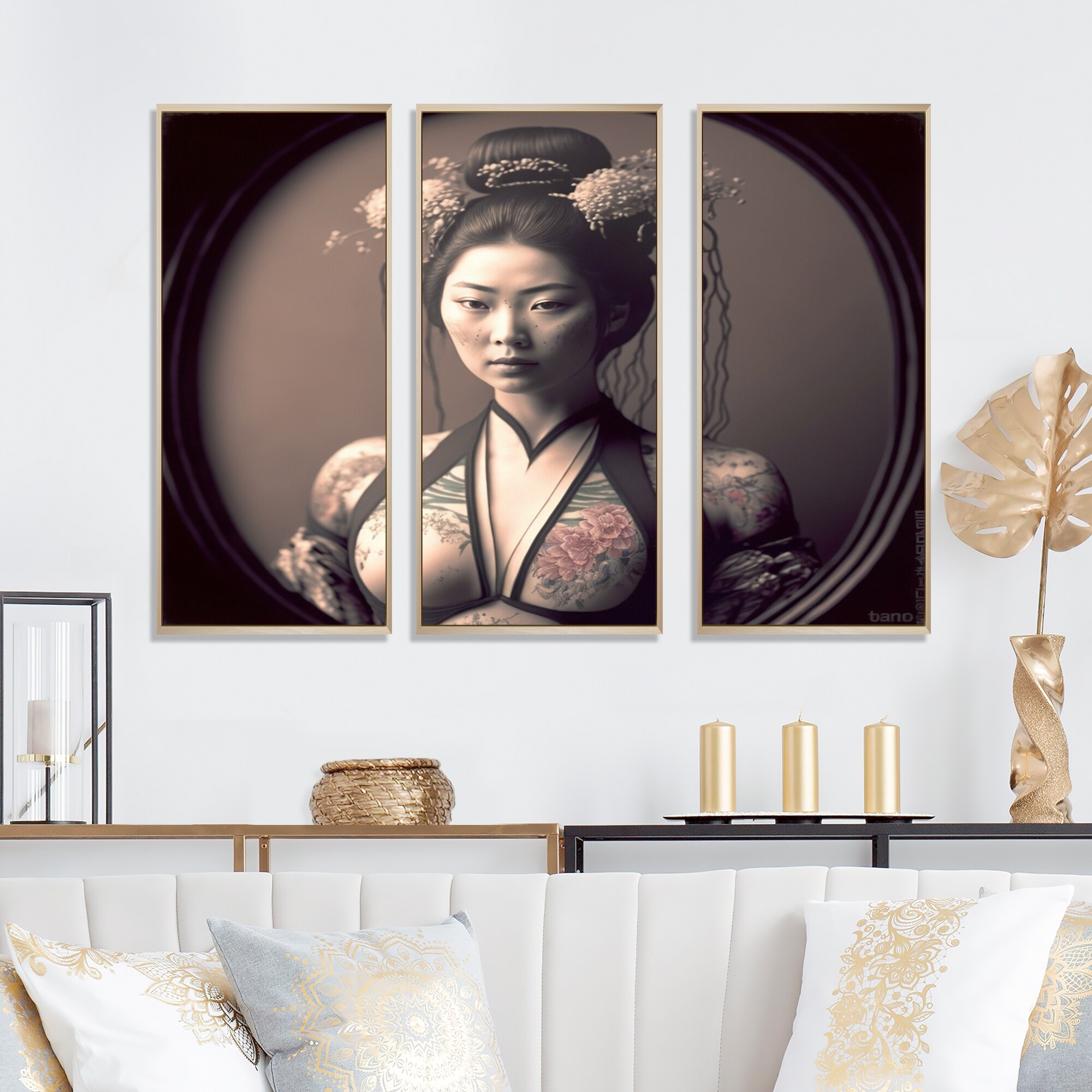 Designart "Japanese Vintage Edo Portrait " Asian Woman Framed Canvas Wall Art Print - 3 Panels