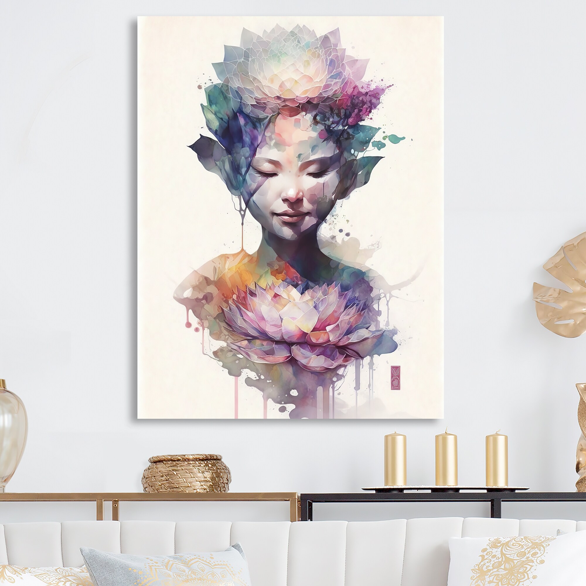 Designart "Elegant Asian Lotus Goddess I" Woman Goddess Metal Wall Art