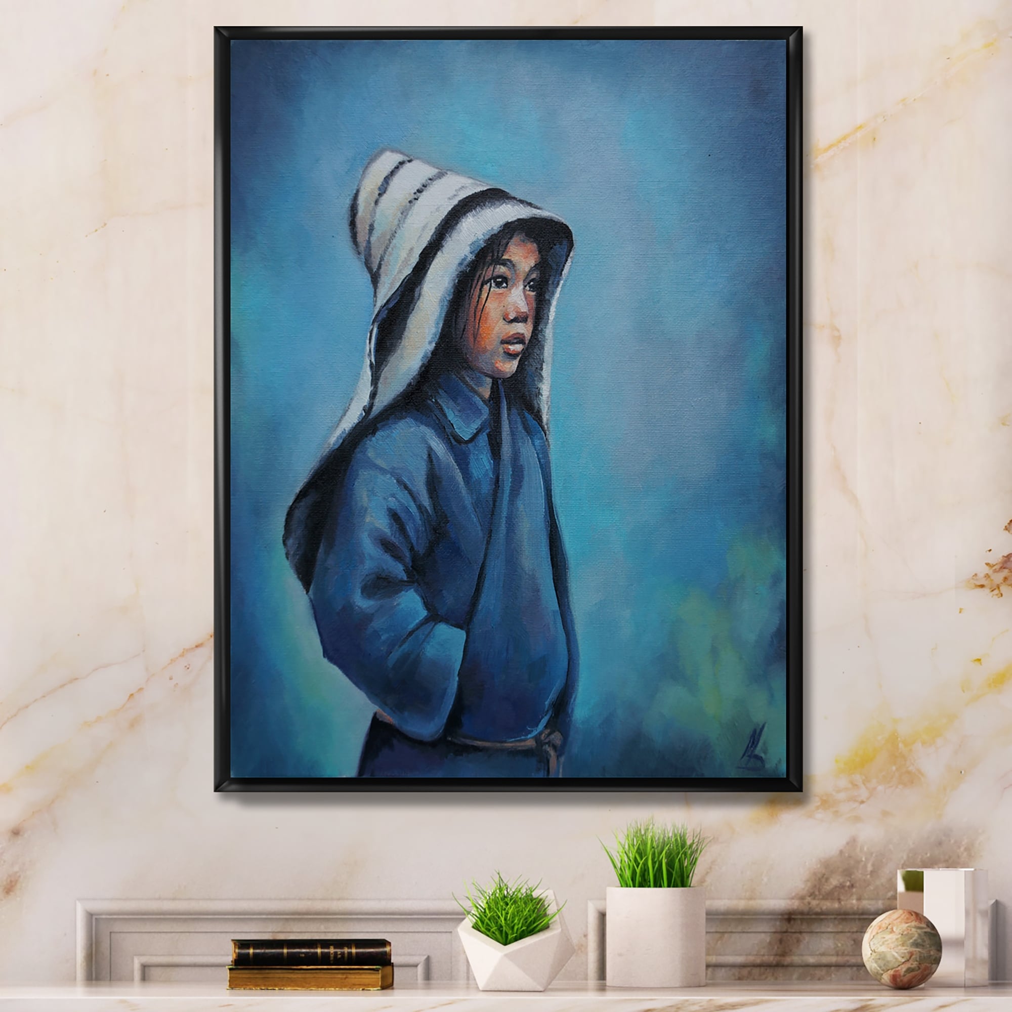 Designart "Cute Asian Kid Art Portrait" Children's Art Framed Canvas artwork