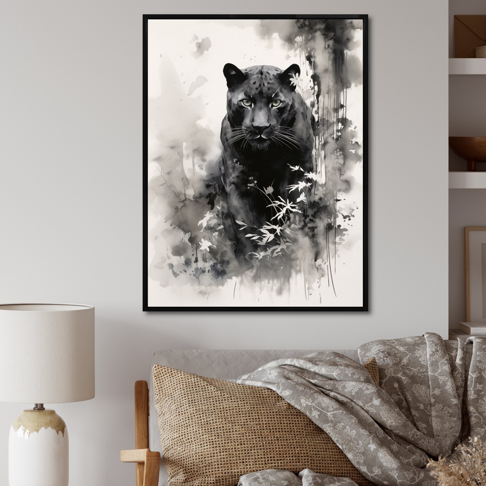 Designart "Asian Art Panther Sumi III" Asian Art Framed Wall Decor