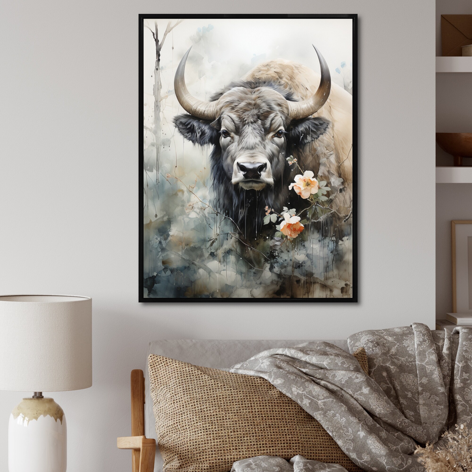 Designart "Asian Art Buffalobison Sumi I" Asian Art Framed Wall Decor