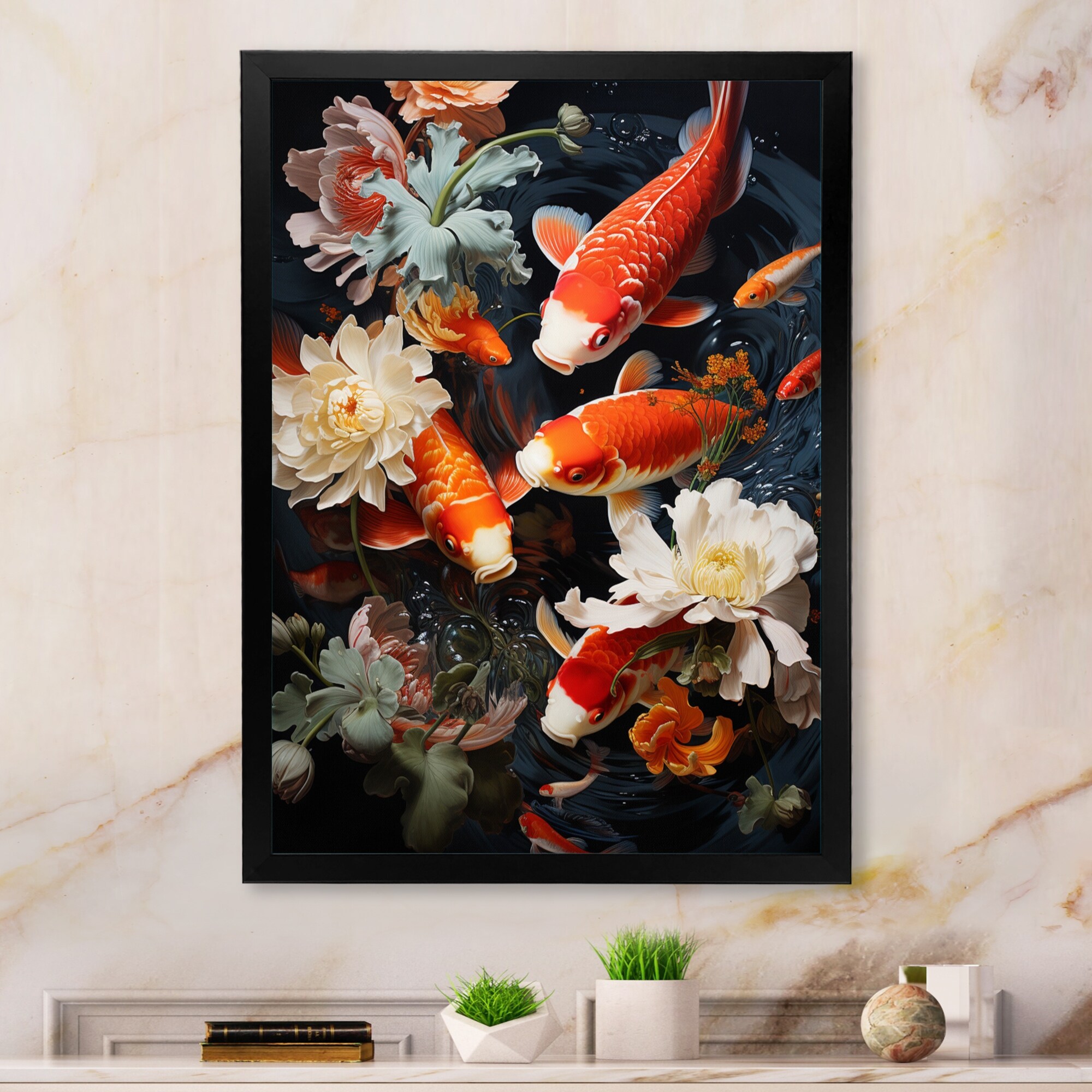 Oliver Gal 'Two Koi Fish Marble by Julianne Taylor Style' World, Countries Wall Art Framed Print Asian Culture - Orange, Gold