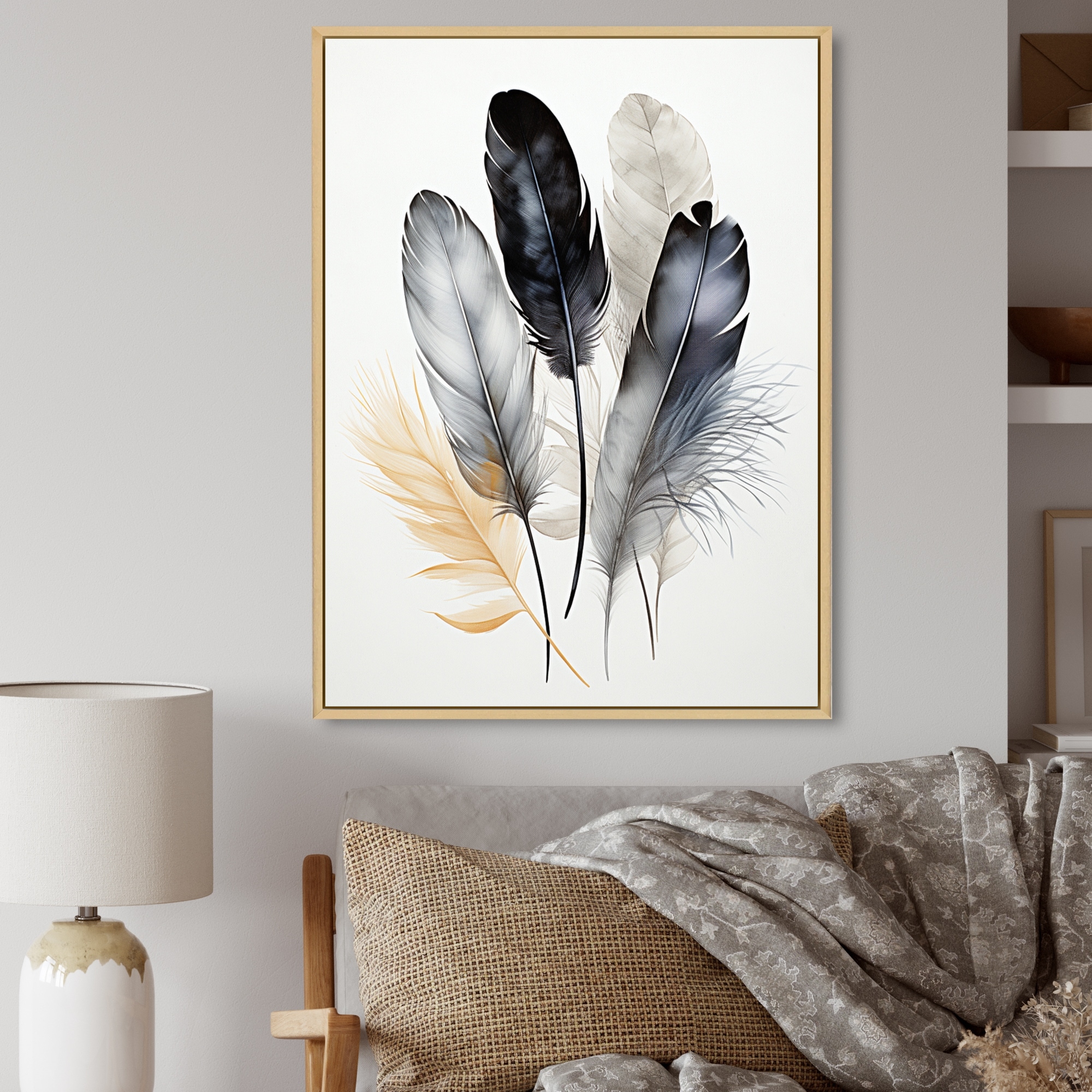 Designart "Asian Art Feathers Sumi II" Asian Art Framed Canvas Wall Art