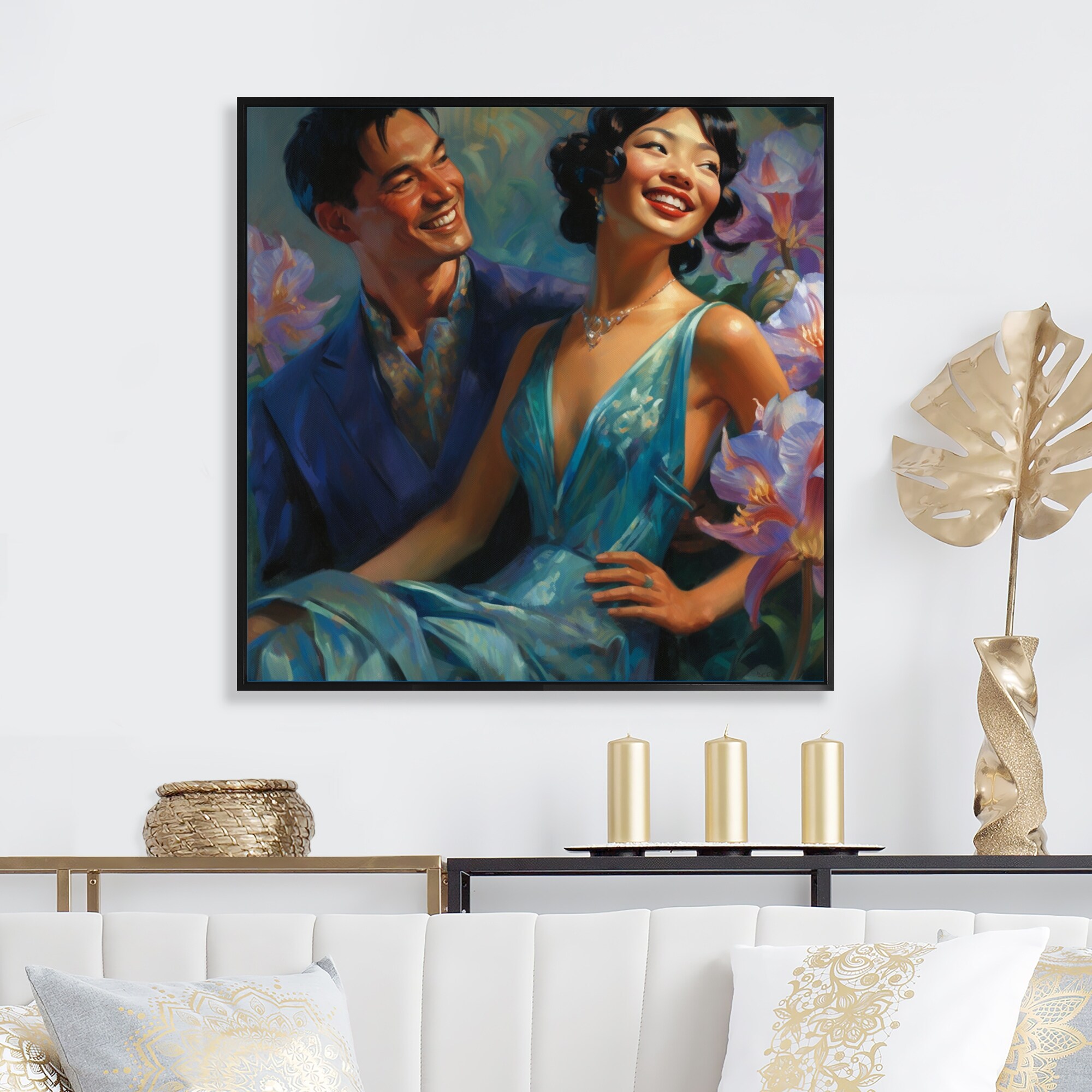 Designart "Beautiful Asian Couple in Love V" Romantic Framed Canvas Art Print