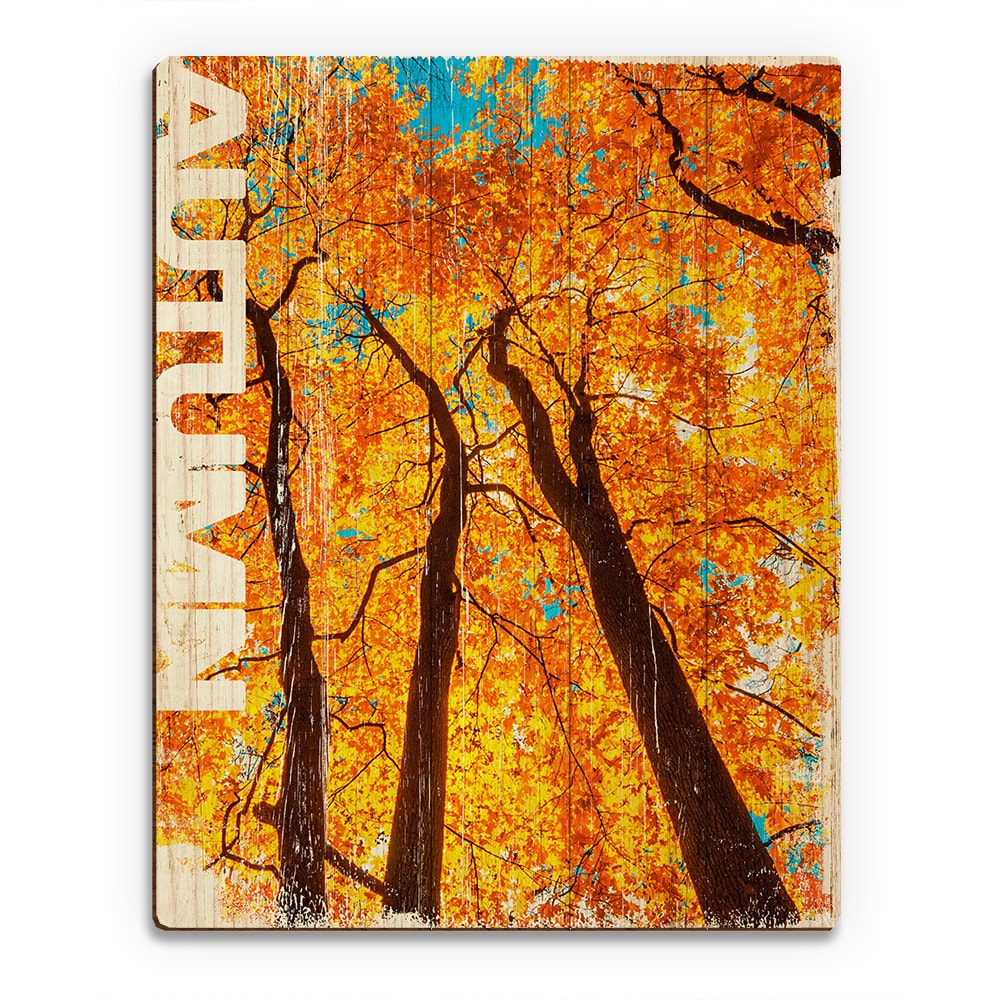 Designart 'Golden Autumn Forest' Traditional Wood Wall Art - Natural Pine Wood