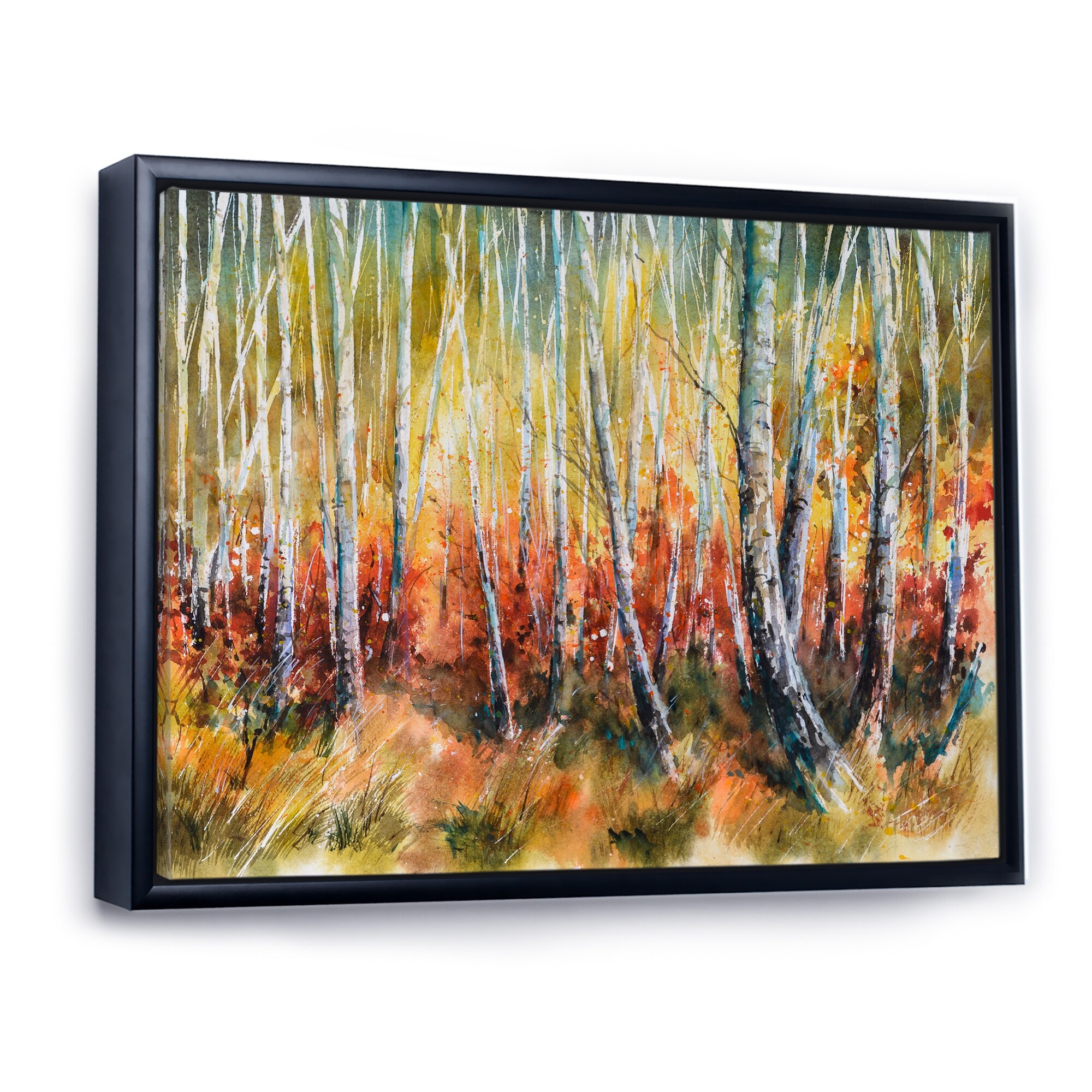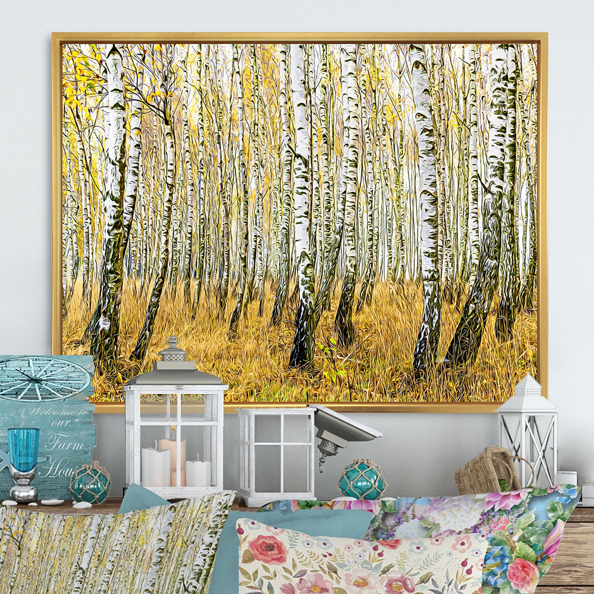 Designart "Autumn Birch Forest Art" Traditional Framed Canvas Wall Art