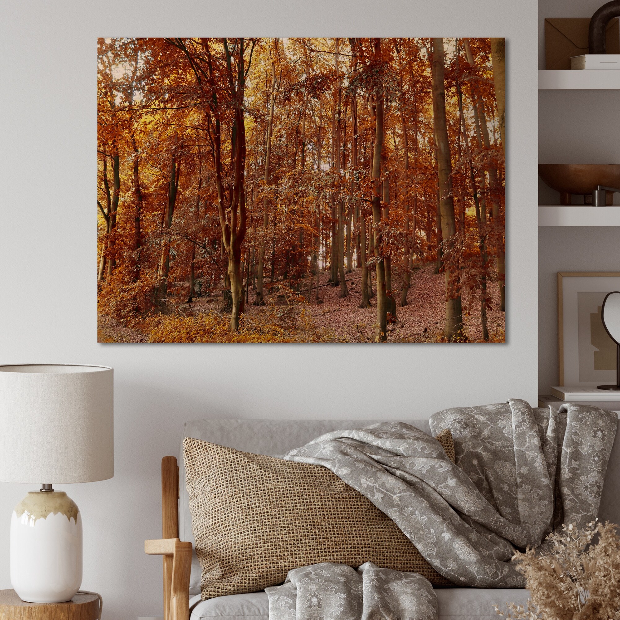 Designart 'Autumn Colored Forest Treescape IV' Farmhouse Print on Natural Pine Wood