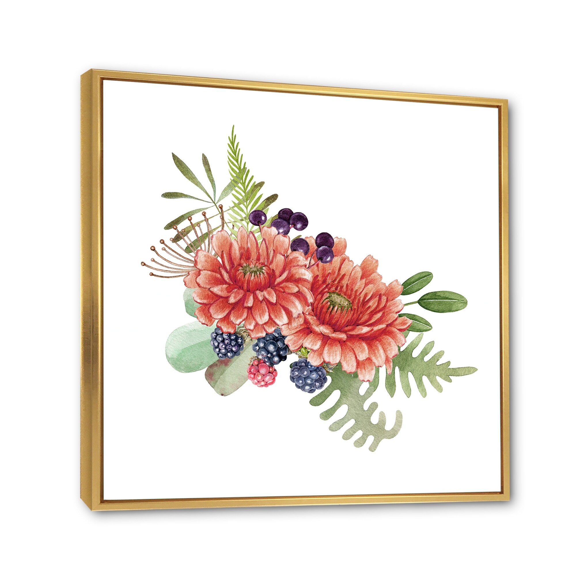 Designart "Red Autumn Flowers Bouquet I" Traditional Framed Canvas Wall Art Print
