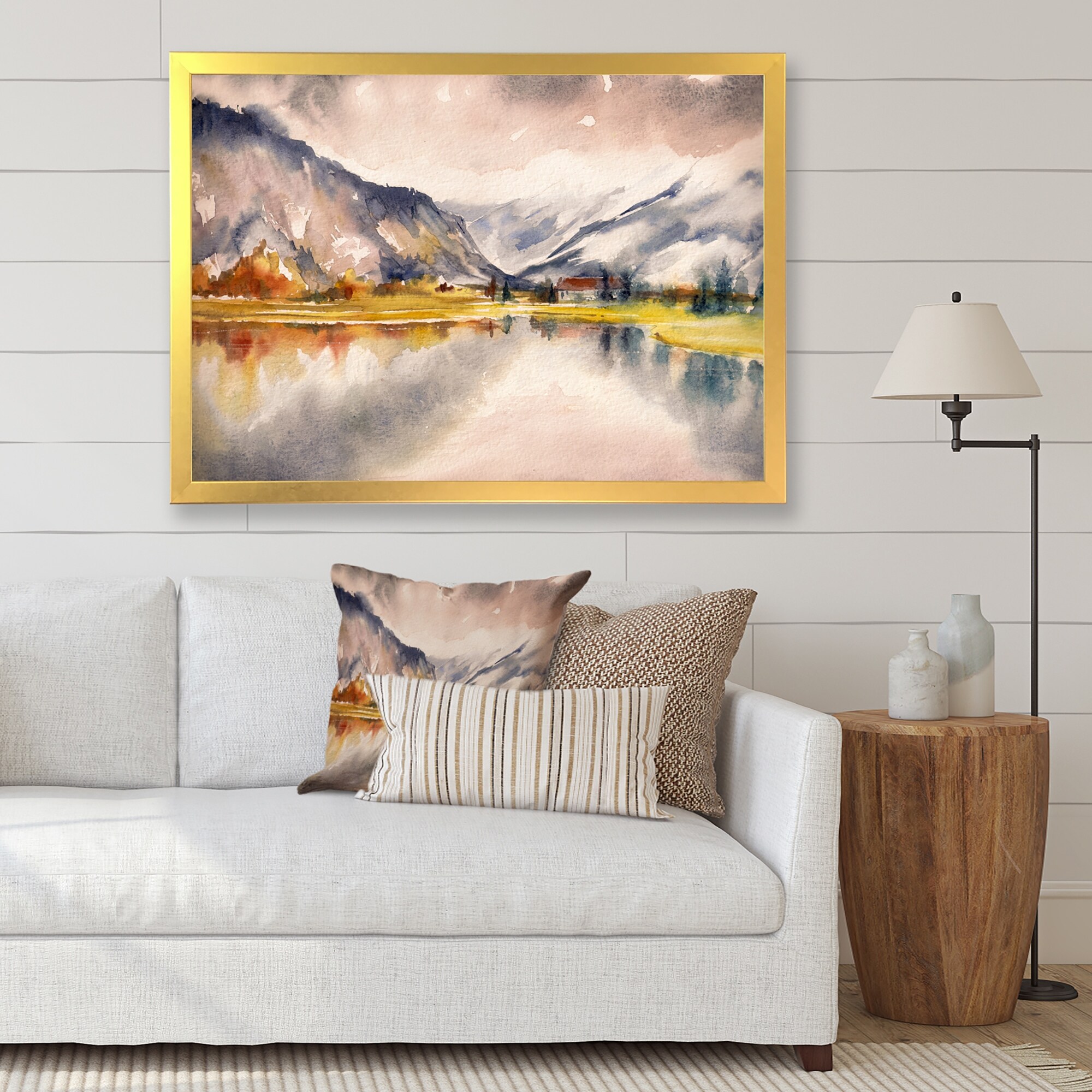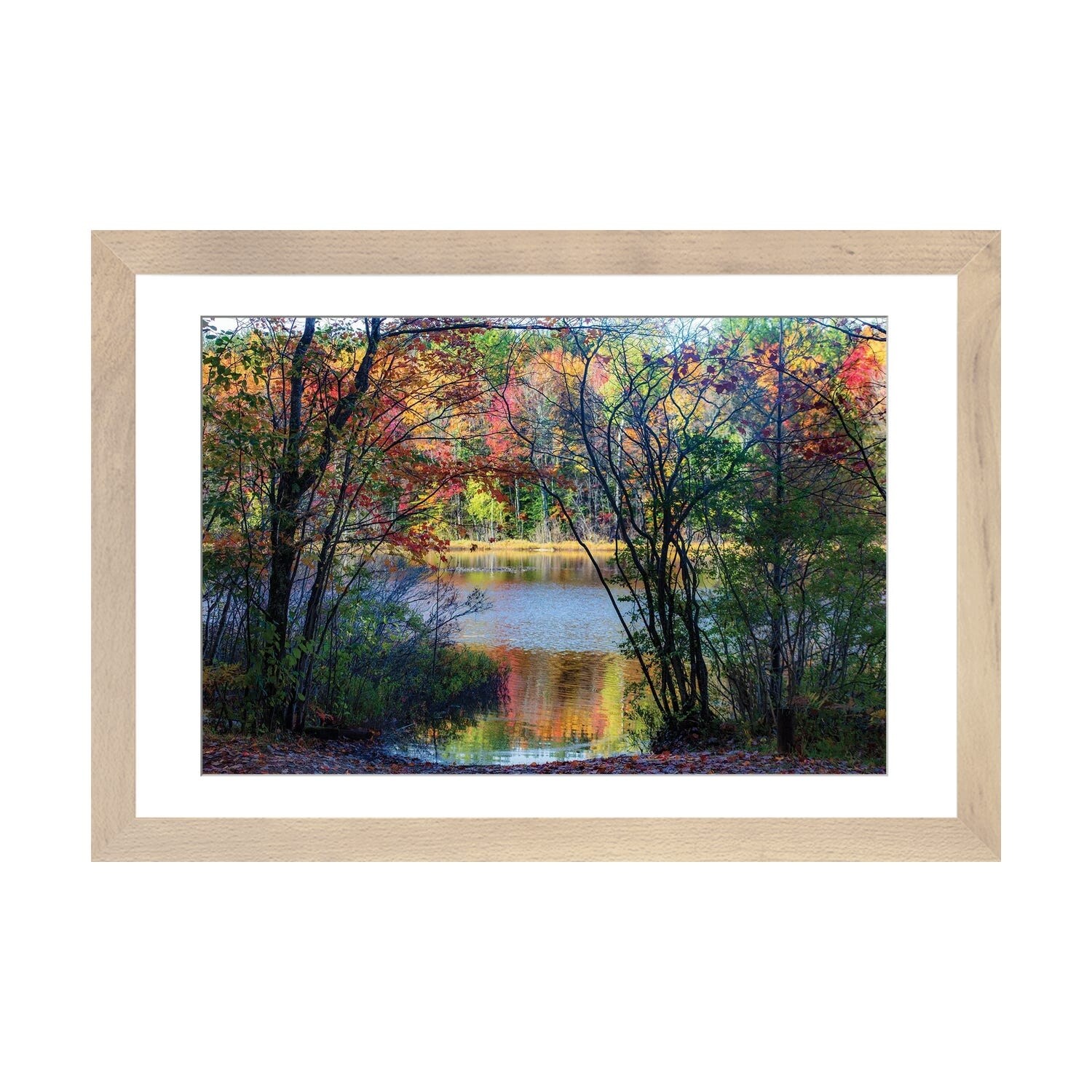 Designart "Autumn Landscape With Sky Reflected on Lake" Country Framed Art Print
