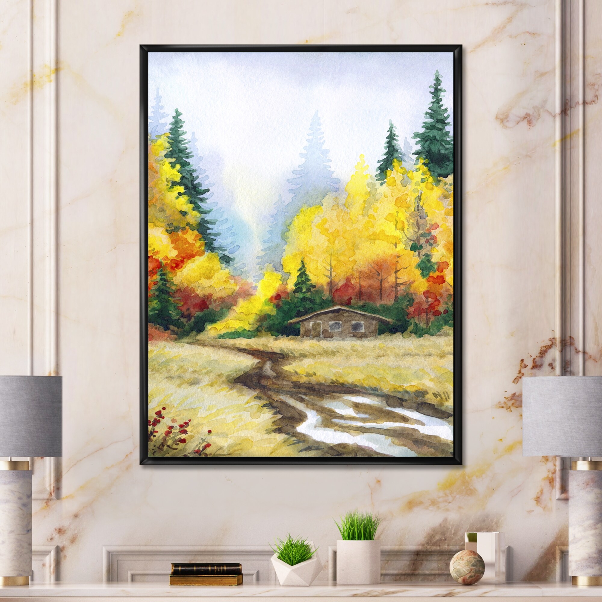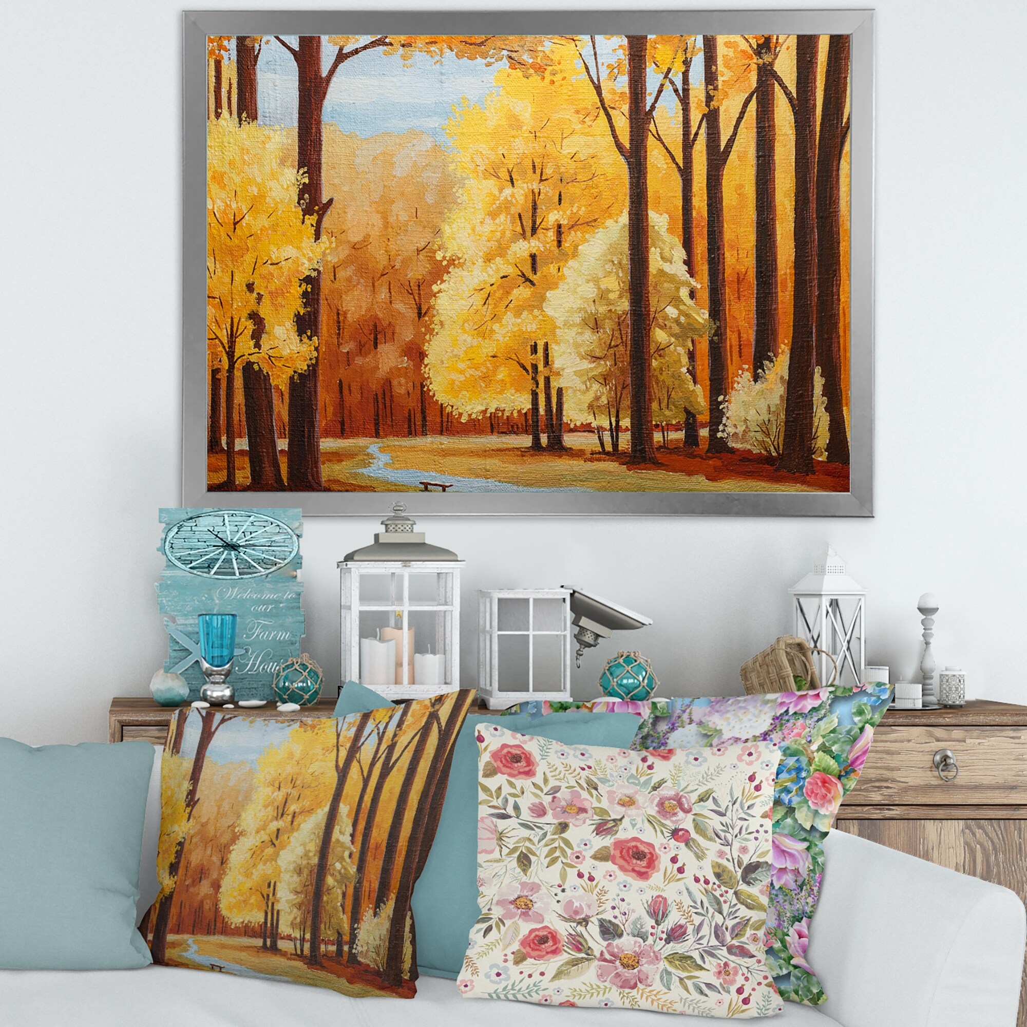 Designart "Yellow Autumn Trees" Traditional Framed Canvas Wall Art Print