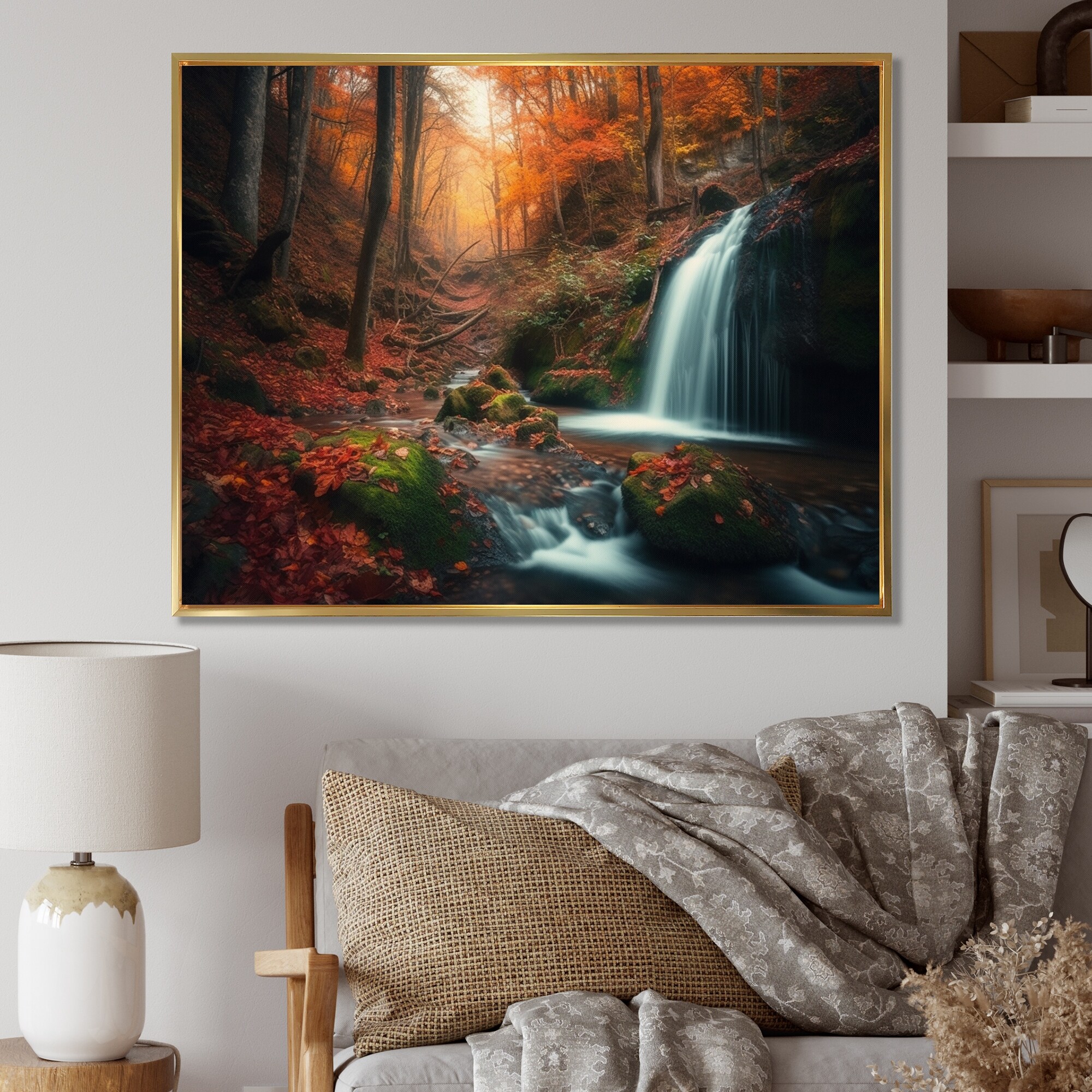 Designart "Waterfall In Autumn Ii" Landscape Forest Framed Canvas Prints