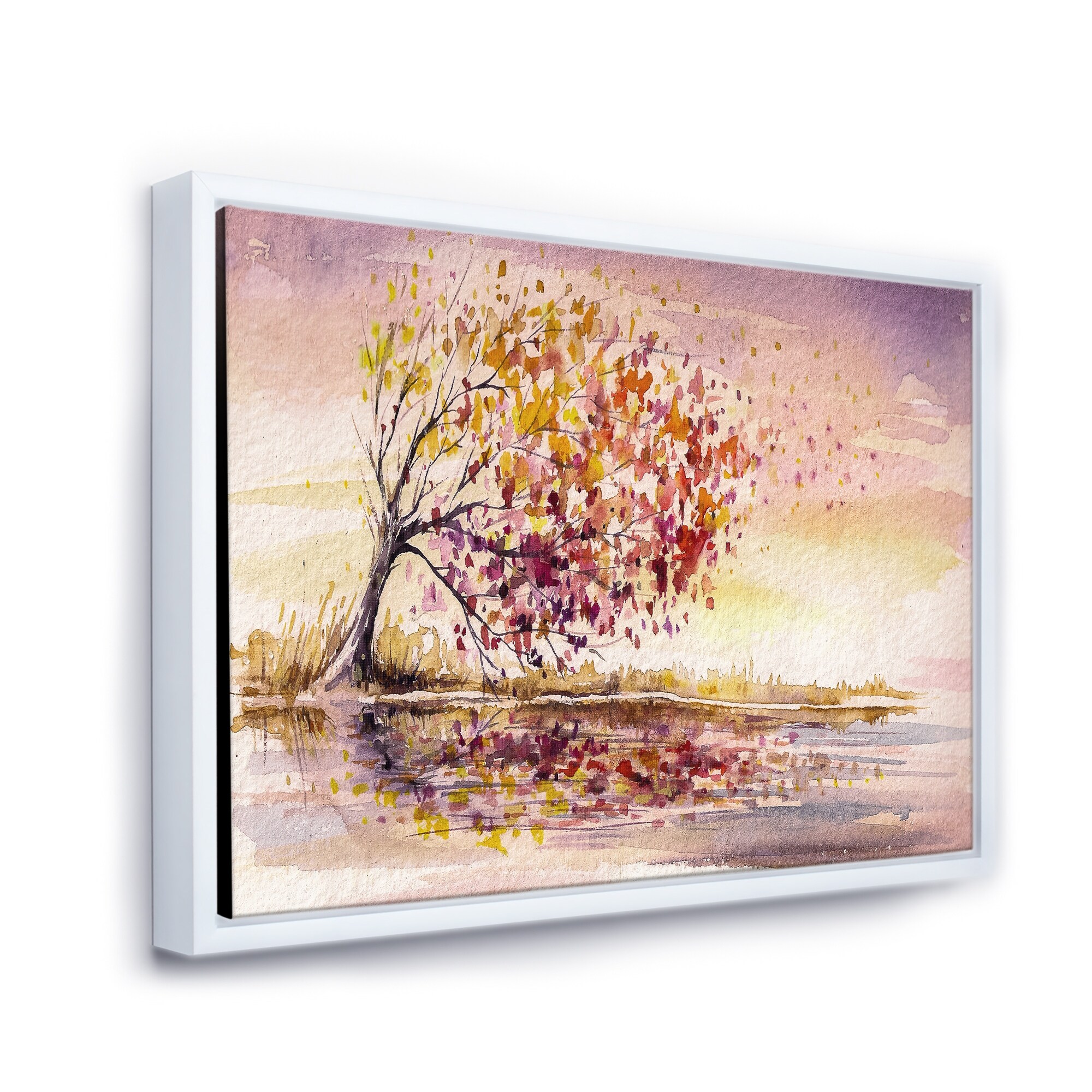 Designart "Yellow and Orange Autumn Tree" Traditional Framed Canvas Wall Art Print