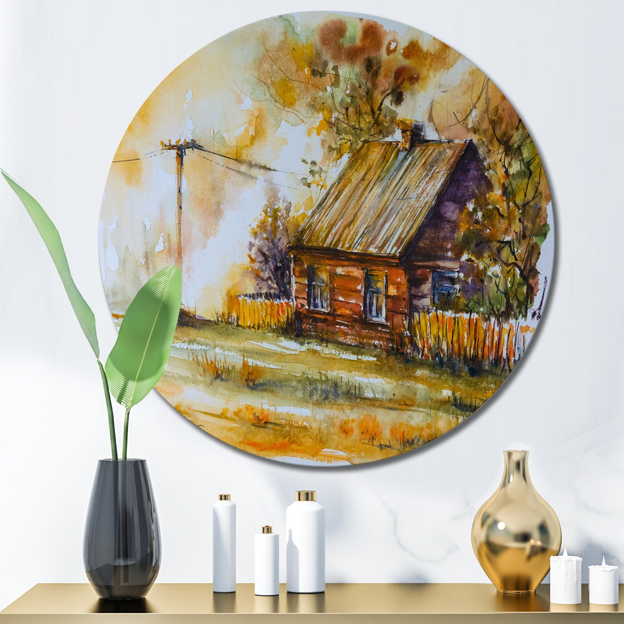 Designart 'Old Cottage Among Autumn Trees in Woods' Traditional Metal Circle Wall Art