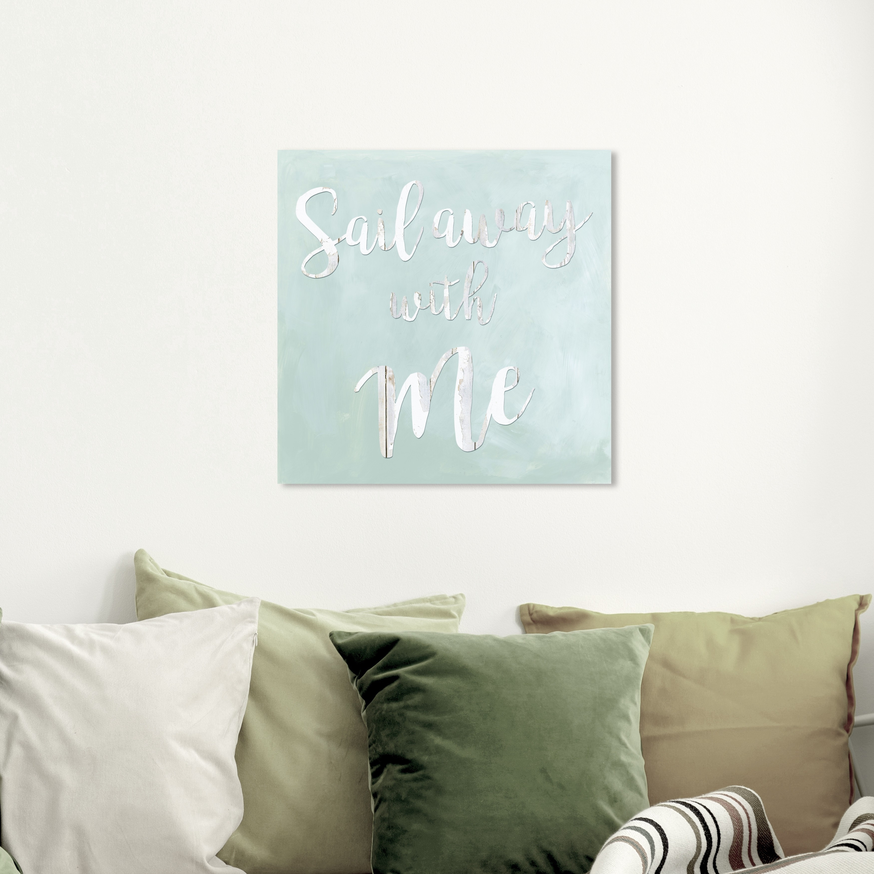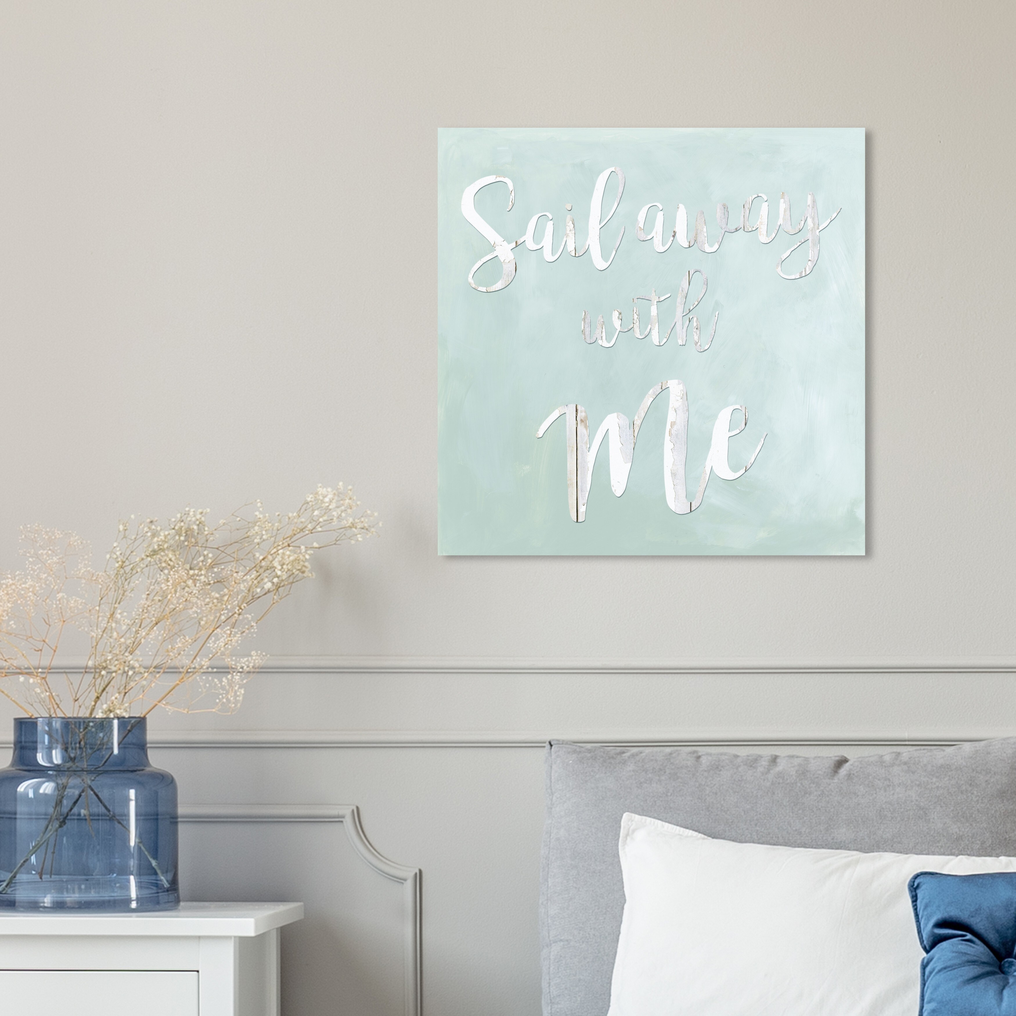 Oliver Gal 'Sail Away With Me White Wash' Typography and Quotes Wall Art Canvas Print Love Quotes and Sayings - Green, White