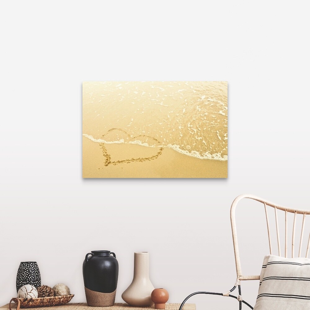"Heart in sand washed away by waves" Canvas Wall Art