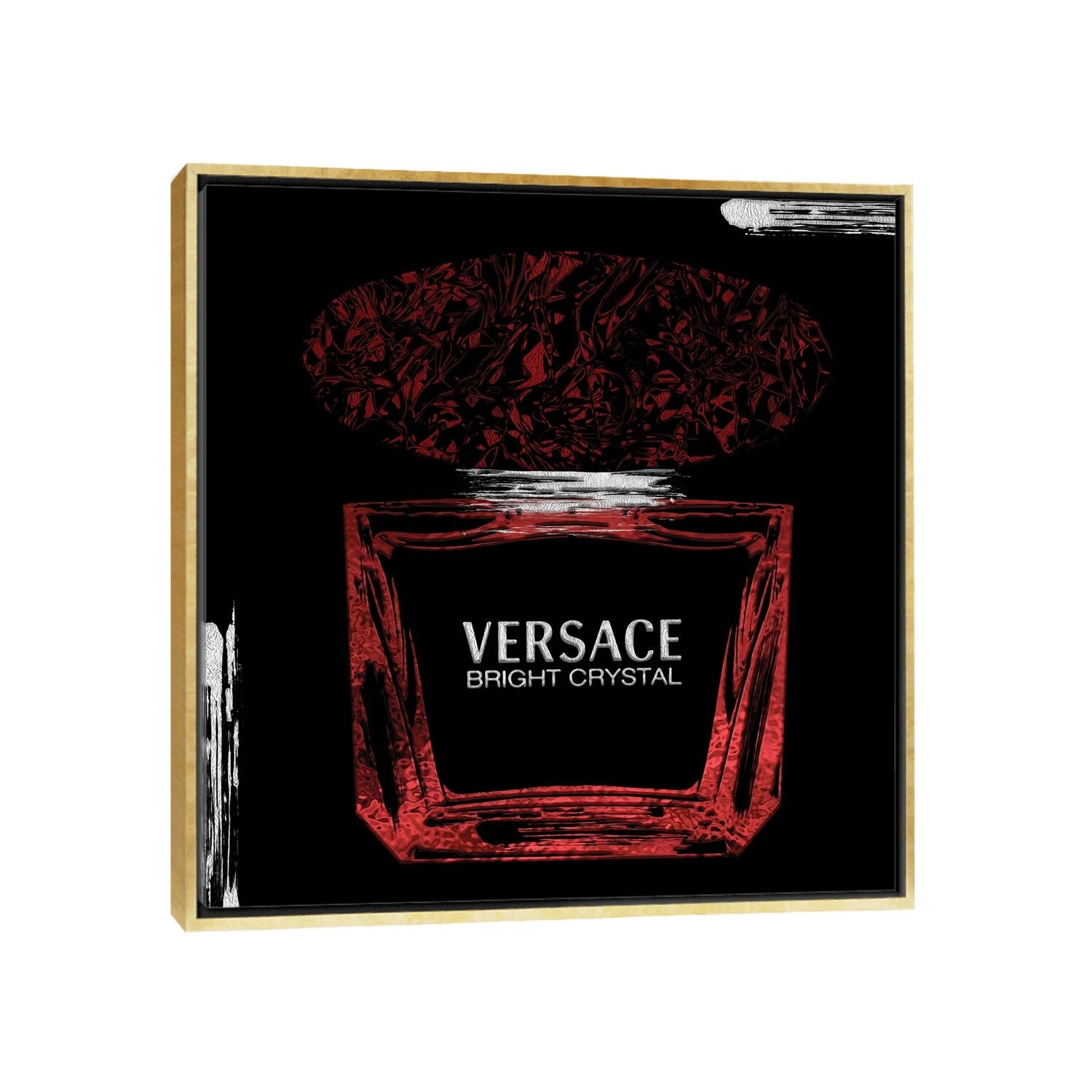 iCanvas "Bright Crystal Antique Gold Perfume Bottle on Black" by Pomaikai Barron Framed Canvas Print