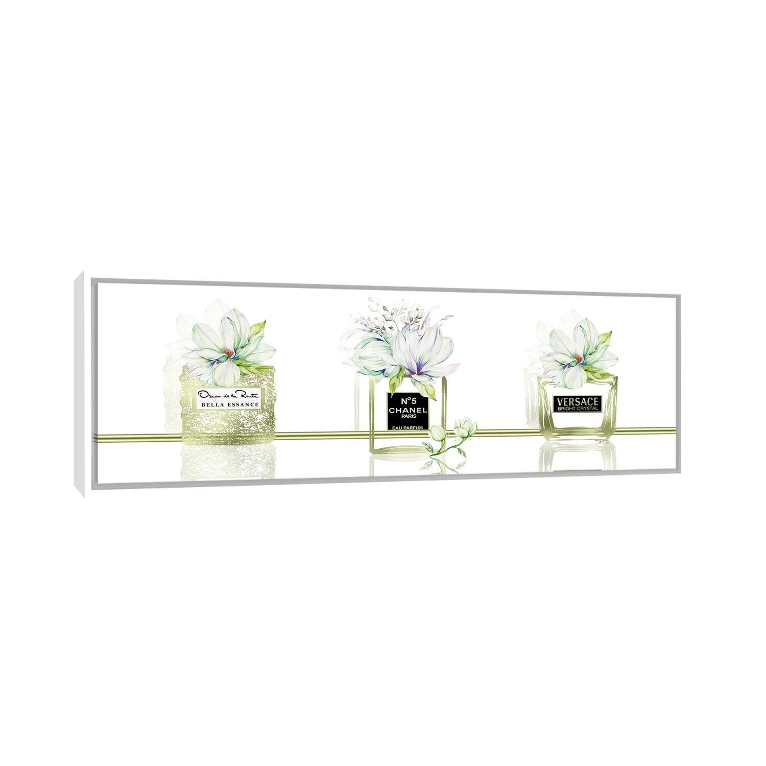iCanvas "Golden Breeze Set of 3 Perfume Bottles With Magnolias" by Pomaikai Barron Framed Canvas Print