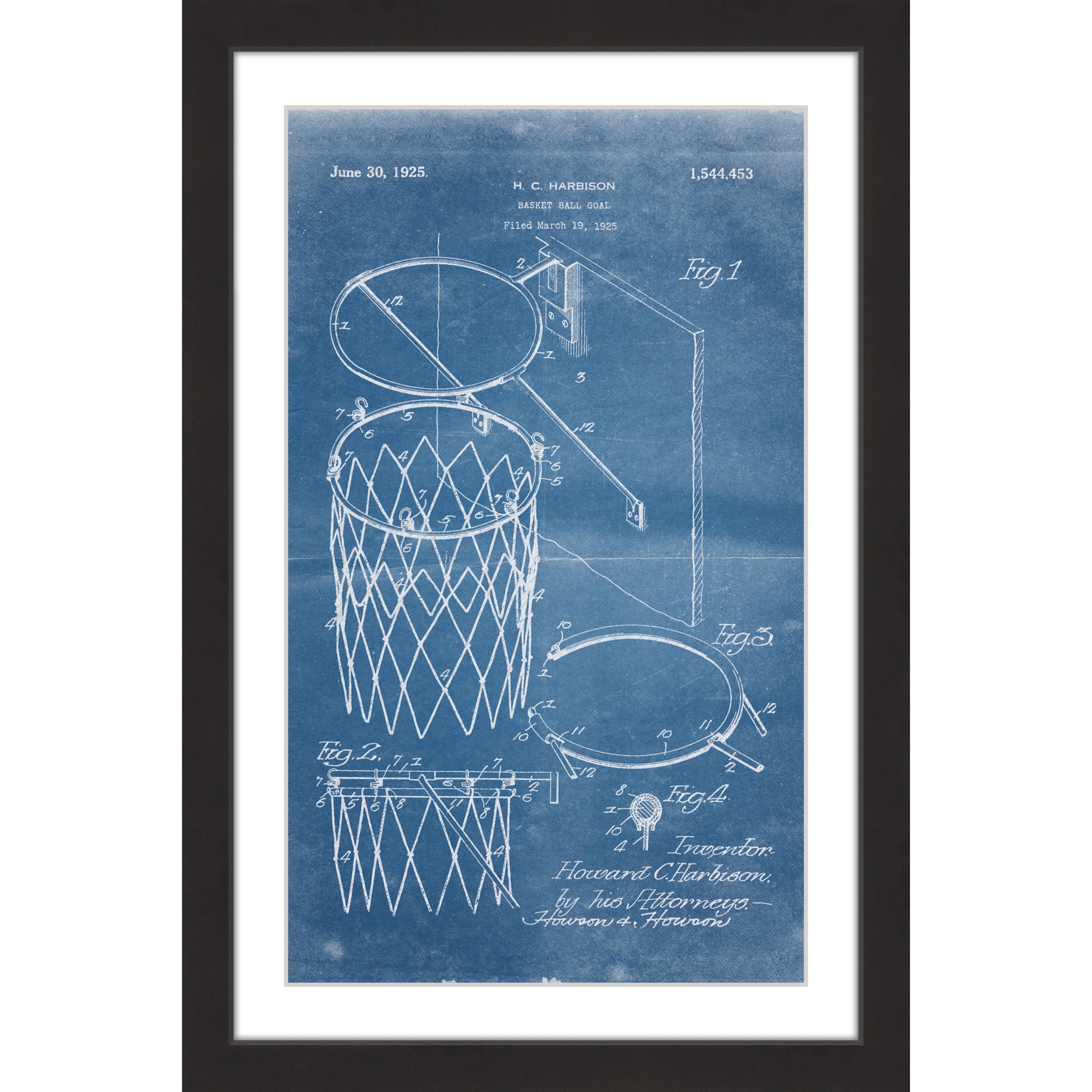 Marmont Hill - Handmade Basketball Hoop 1925 Blueprint Framed Print