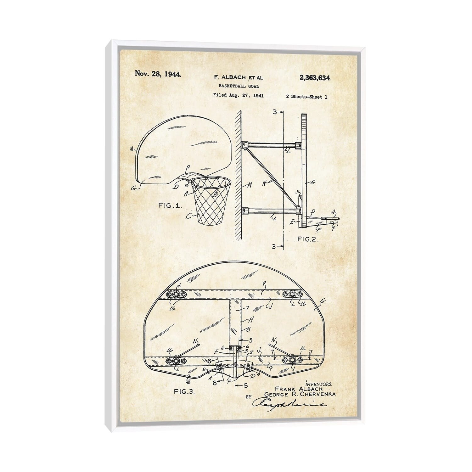 iCanvas "Basketball Hoop" by Patent77 Framed|White - 40x26