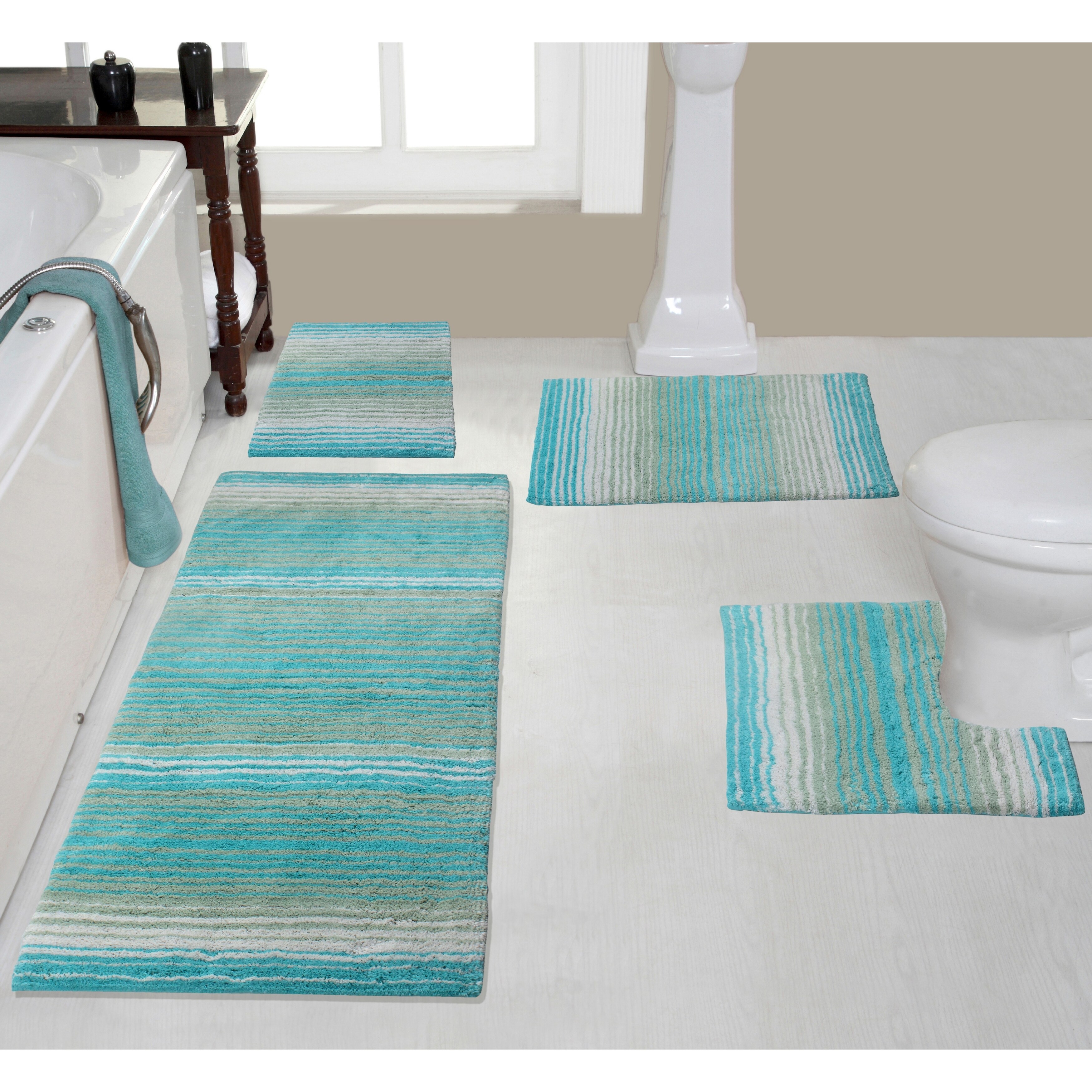 Gradiation Collection Absorbent Cotton 4 Piece Set Machine Washable Bath Rug