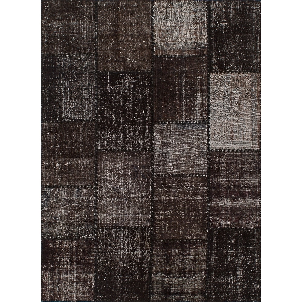 Hand-knotted Color Patchwork Black Wool Rug