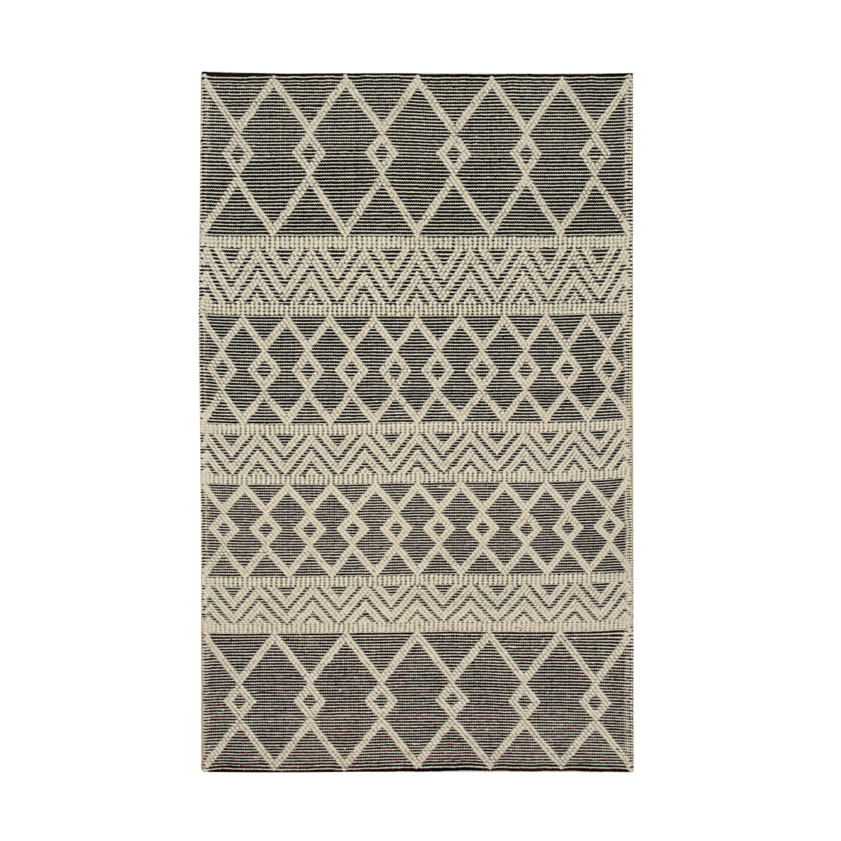 Sumaiya Diana Hand Woven Dhurrie wool Ivory/Black Area Rug